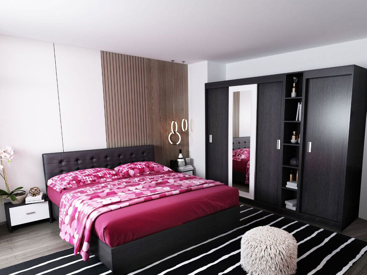 Set Mobila Dormitor Bingo F Tapitat Wenge 6 piese face parte din familia Bingo, acest set de mobila este format din mai multe piese la un pret avantajos. Corpurile sunt construite din PAL melaminat de 16mm cu finisaj Ferrara si Alb Mat, o textura similara lemnului, care creeaza un contrast rafinat si un ambient placut. Dimensiunea patului este la alegere 140×200, 160×200, 180×200 (spatiul pentru saltea) iar spatarul poate fi comandat netapitat, tapitat alb sau wenge . Cantul aplicat este unul de 0,6 care le permite muchiilor sa fie plăcute la atingere fiind finisate si atent retusate. Corpuri Set Mobila Dormitor Bingo F Tapitat Wenge 6 piese Dulap 3U glisante – L 153 x A 55 x H 194.8cm – Schita Montaj Compartimentat cu 7 polite si bara de umerase, cu oglinda aplicata pe usa. Dulap 1U – L 44.4 x A 55 x H 194.8cm – Schita Montaj Compartimentat cu 5 polite. Corp Polite – L 28 x A 33.6 x H 194.8cm – Schita Montaj Compartimentat cu 6 polite deschise. Pat matrimonial Tapitat – L 146, 166, 186 x A 203.2 x H 92cm – Schita Pat 140 / Schita Pat 160 / Schita Pat 180 Suport de saltea inclus. Sustine pana la 300kg. Set noptiere – L 44.4 x A 22.3 x H 32.5cm – Schita Montaj Cu usa si spatiu generos. Livrare Gratuita prin flota proprie Suntem producatori de mobilier Toate corpurile au o garantie de 2 ani Pat dormitor Tapitat Wenge 140, 160 sau 180 x 200 Patul matrimonial mentine linia de design al setului de dormitor Bingo F Tapitat Wenge 6 piese. Este rezistent cu sustinere in: repere de sustinere multiple 4 linii de sustinere pe latime si 3 pe lungime L-uri metalice pe colturi Latime: 203.2 cm Adancime: 186 cm sau 166 cm sau 146 cm (la alegere) Inaltime capat mare: 92 cm Inaltime capat mic: 34 cm Suport de saltea din pal brut inclus. Salteaua nu este inclusa! Bifati sus ca doriti. Saltea Compatibila 180×200 cm sau 160×200 cm sau 140×200 cm Atentie! Pretul afisat nu include salteaua si alte accesorii sau obiecte de decor (tablouri, elemente de iluminat, asternuturi, covor etc.) Dimensiunile pot oscila intre ± 10 mm. Set Mobila Dormitor Bingo F Tapitat Wenge 6 piese se livreaza demontat si este insotit de accesorii si instructiuni de asamblare.