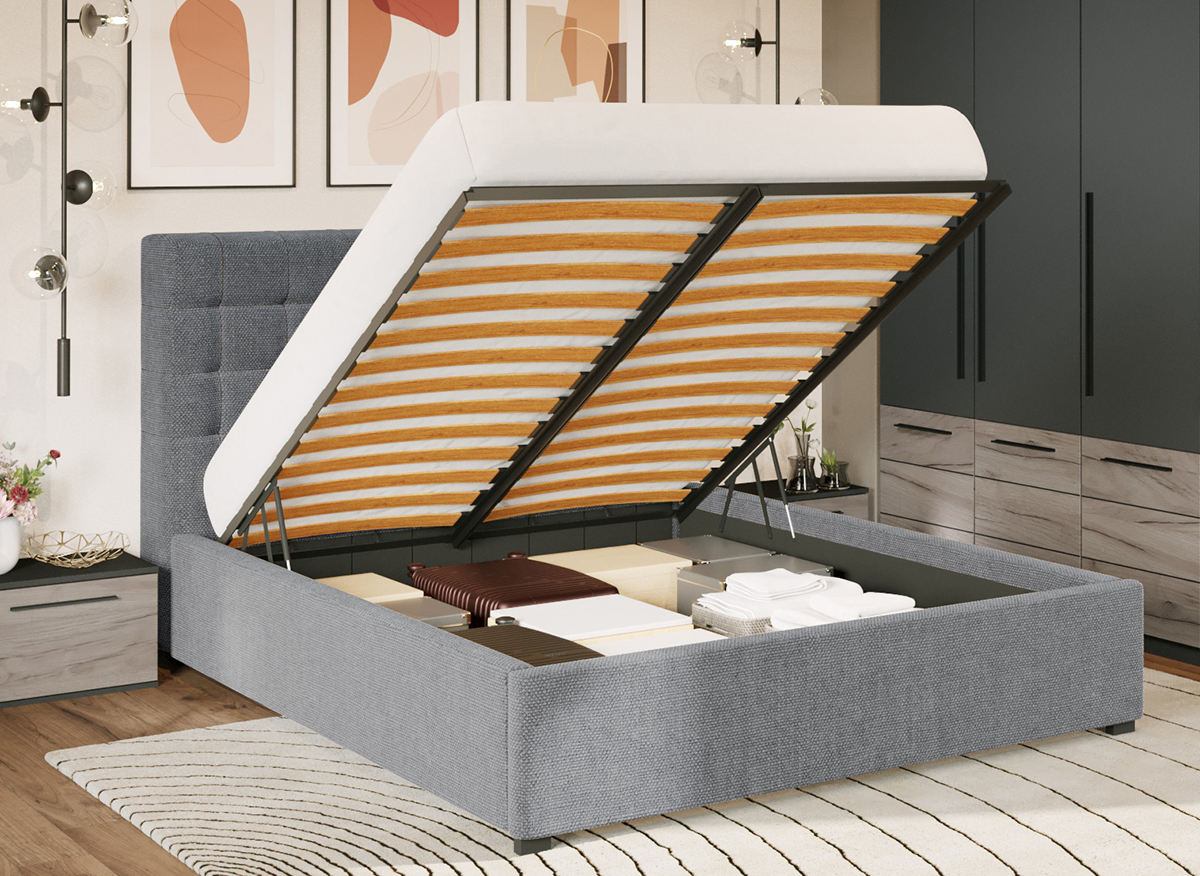 Set Dormitor Gri Noce C19 Set Dormitor Gri Noce C19 este un dormitor matrimonial cu un design inedit. Corpurile acestuia sunt spatioase si indeplinesc atat un rol estetic, cat si unul functional desavarsit. Finisajul gri antracit in combinatie cu stejarul k02 si manerele negre creeaza un ambient modern si relaxant. Dormitorul este compus din: Dulap 1.51m  – L 151 x A 53 x H 199cm – Schita Montaj Compartimentat cu 6 polite si bara de umerase. Dulap suprapozabil 3U – L 151 x A 53 x H 49.2 cm – Schita Montaj Compartimentat cu 2 polite. Pat tapitat matrimonial rabatabil – L 152/172/192 x A 215.5 x H 114 cm –  Schita Pat Suport de saltea inclus. Sustine pana la 300kg. Set noptiere – L 46 x A 35 x H 34cm – Schita Montaj Cu usi si spatiu generos. Comoda (optional) – L 67 x A 34 x H 71cm – Schita Montaj Spatiu depozitare acoperit cu 2 usi. Livrare Gratuita prin flota proprie Suntem producatori de mobilier Toate corpurile au o garantie de 2 ani Video de prezentare familie Videoul de prezentare poate contine mai multe corpuri de mobilier sau mai putine in comparatie cu produsul de pe aceasta pagina. Scopul acestui video este de a detalia aspectul materialelor, accesoriilor cat si a familiei din care face parte. Pat Tapitat Rivo cu somiera rabatabila Acest  Pat tapitat Rivo cu somiera rabatabila si lada de depozitare  se remarca prin designul sau placut si armonios, avand un spatar cu margini rotunjite. Patul are somiera rabatabila cu pistoane (sistem gas lift)  inclusa, realizata dintr-un  cadru metalic, cu lamele din lemn.   Lada  este din pal, captusita cu o panza neagra si are o inaltime de  26 cm . Patul are  picioruse de 3 cm , care permit aerului sa circule. Tapiteria este din stofa  gri,  completand perfect corpurile din Set Mobila Dormitor Gri Noce C19. Dimensiuni Pat Rivo Latime: 152 / 172 / 192 cm Adancime: 215.5 cm Inaltime capat mare: 114 cm Inaltime capat mic: 36.5 cm Spatiu incadrament saltea: 6 cm  (cat intra salteaua in cadru) Greutate maxima recomandata: 300kg Patul are somiera rabatabila cu pistoane (sistem gas lift) inclusa, nu se percep costuri suplimentare. Saltea Compatibila  140×200 cm, 160×200 cm sau 180×200 cm in functie de dimensiunea de pat aleasa. Salteaua nu este inclusa! Bifati sus ca doriti. Materialul  din spatele tabliei este diferit de tapiteria din fata. Este o tesatura neagra, cu o textura diferita. Set Dormitor Gri Noce C19 Face parte din familia de mobila pentru dormitor Noce . Mobileaza un dormitor rapid si usor. O solutie ideala pentru un dormitor matrimonial. Corpurile din Set Dormitor Gri Noce C19 sunt realizate din PAL melaminat cu finisaj gri antracit si stejar k02 , o textura similara lemnului, care creeaza un contrast rafinat si un ambient placut. Cantul aplicat este unul de 0,6 ce le permite muchiilor sa fie placute la atingere  fiind finisate si atent retusate. Pretul afisat nu include alte accesorii sau obiecte de decor (tablouri, elemente de iluminat, asternuturi, covor etc.) Produsul se livreaza demontat si este insotit de accesorii si instructiuni de asamblare. Dimensiunile sunt exprimate in cm si pot oscila intre ± 10 mm.