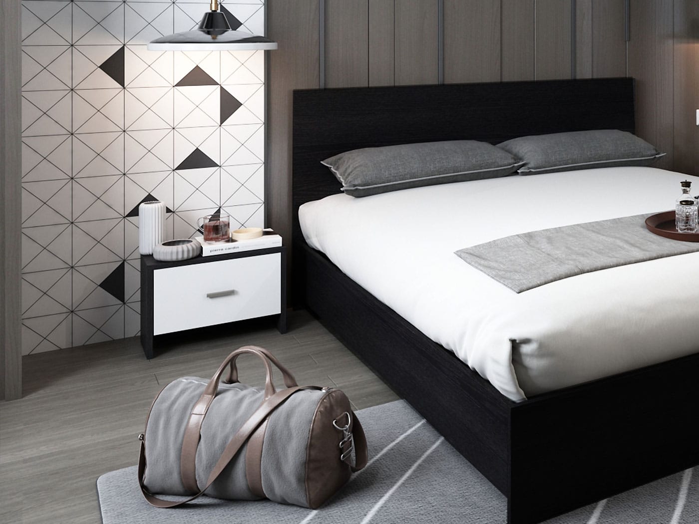 Set Mobila Dormitor Mario 4U face parte din familia Mario, aceast set de mobila este format din mai multe piese la un pret avantajos. Corpurile sunt construite din PAL melaminat de 16mm cu finisaj Ferrara si Alb Mat, o textura similara lemnului, care creeaza un contrast rafinat si un ambient placut. Dimensiunea patului este la alegere 140×200, 160×200, 180×200 (spatiul pentru saltea) iar spatarul poate fi comandat netapitat, tapitat alb sau wenge . Cantul aplicat este unul de 0,6 care le permite muchiilor sa fie plăcute la atingere fiind finisate si atent retusate. Corpuri Set Mobila Dormitor Mario 4U Dulap 4U – L 164 x A 48 x H 192cm – Schita Montaj Compartimentat cu 5 polite si 2 bare de umerase. Pat matrimonial – L 146, 166, 186 x A 203.2 x H 92cm – Schita Montaj Suport de saltea inclus. Sustine pana la 300kg. Comoda – L 67 x A 40.5 x H 71.7cm – Schita Montaj Spatiu depozitare deschis si doua usi. Set noptiere – L 44.4 x A 22.3 x H 32.5cm – Schita Montaj Cu usa si spatiu generos. Livrare Gratuita prin flota proprie Suntem producatori de mobilier Toate corpurile au o garantie de 2 ani Video de prezentare familie Videoul de prezentare poate contine mai multe corpuri de mobilier sau mai putine in comparatie cu produsul de pe aceasta pagina. Scopul acestui video este de a detalia aspectul materialelor, accesoriilor cat si a familiei din care face parte. Pat matrimonial Mario cu suport saltea 3 dimensiuni. Patul matrimonial mentine linia de design al setului de dormitor. Este rezistent cu sustinere in: repere de sustinere multiple 4 linii de sustinere pe latime si 3 pe lungime L-uri metalice pe colturi Latime: 203.2 cm Adancime: 186 cm sau 166 cm sau 146 cm (la alegere) Inaltime capat mare: 92 cm Inaltime capat mic: 34 cm Suport de saltea din pal brut inclus. Salteaua nu este inclusa Saltea Compatibila 180×200 cm sau 160×200 cm sau 140×200 cm Atentie! Pretul afisat nu include salteaua si alte accesorii sau obiecte de decor (tablouri, elemente de iluminat, asternuturi, covor etc.) Dimensiunile pot oscila intre ± 10 mm. Produsul se livreaza demontat si este insotit de accesorii si instructiuni de asamblare.