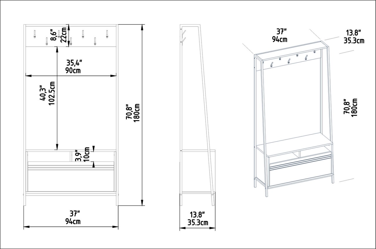 Mezoni-Cuier cu pantofar, Decorotika, Devin, 94 x 180 x 35.3 cm, pal melaminat, negru