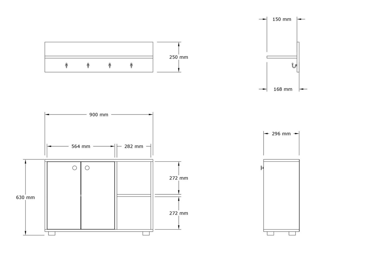 <p>PAL<br/><br/>Grosime:18 mm<br/><br/>Dimensiune corp de mobilier inalt: Latime: 90 cm <br/> Inaltime: 63 cm <br/> Adancime: 30 cm<br/><br/>Dimensiune raft de perete: <br/>Latime: 90 cm <br/>Inaltime: 25 cm <br/>Adancime: 17 cm<br/><br/>Rafturi numeroase<br/><br/>Poate fi fixat pe perete<br/></p>