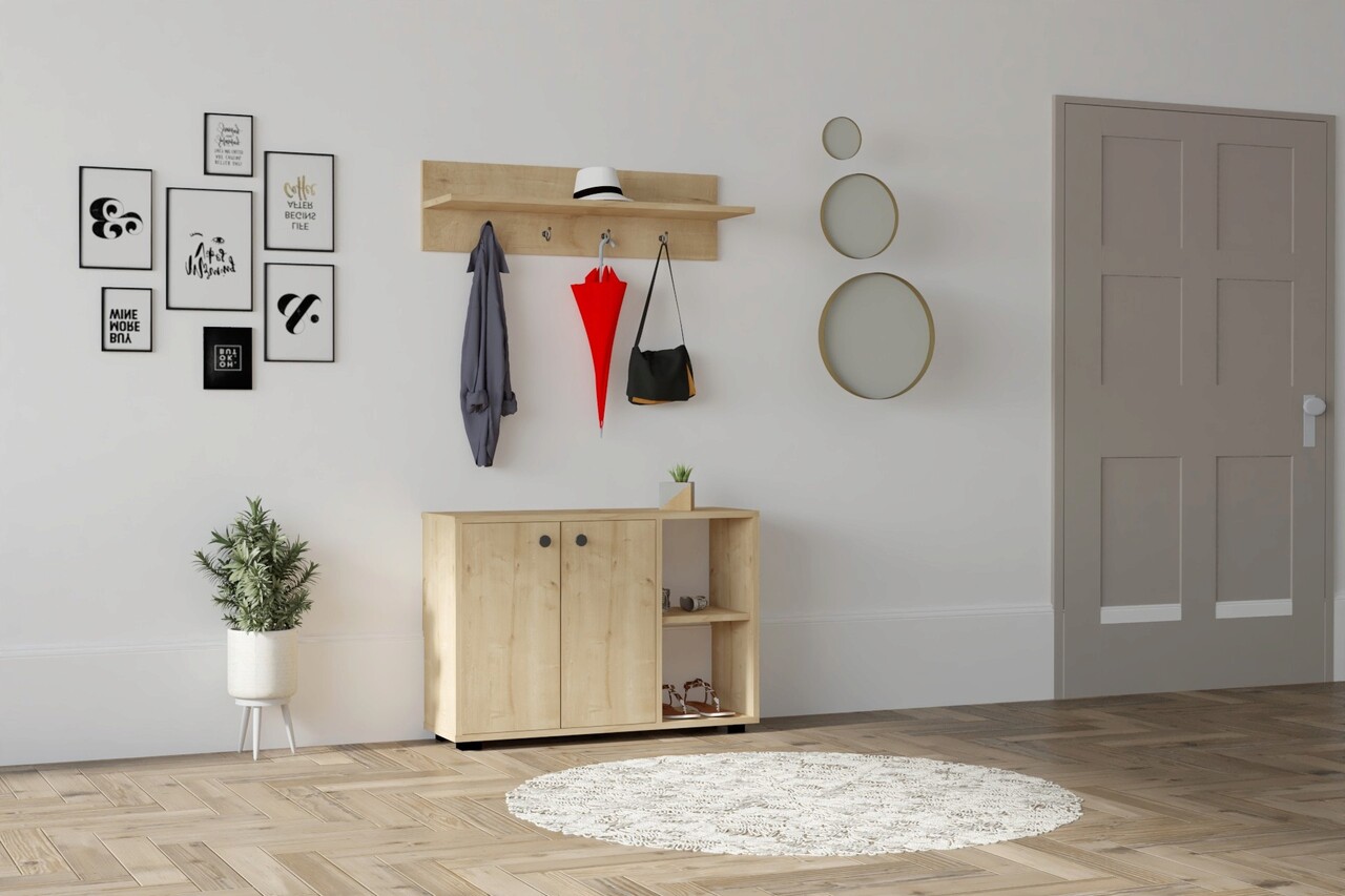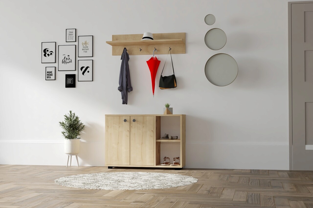 <p>PAL<br/><br/>Grosime:18 mm<br/><br/>Dimensiune corp de mobilier inalt: Latime: 90 cm <br/> Inaltime: 63 cm <br/> Adancime: 30 cm<br/><br/>Dimensiune raft de perete: <br/>Latime: 90 cm <br/>Inaltime: 25 cm <br/>Adancime: 17 cm<br/><br/>Rafturi numeroase<br/><br/>Poate fi fixat pe perete<br/></p>