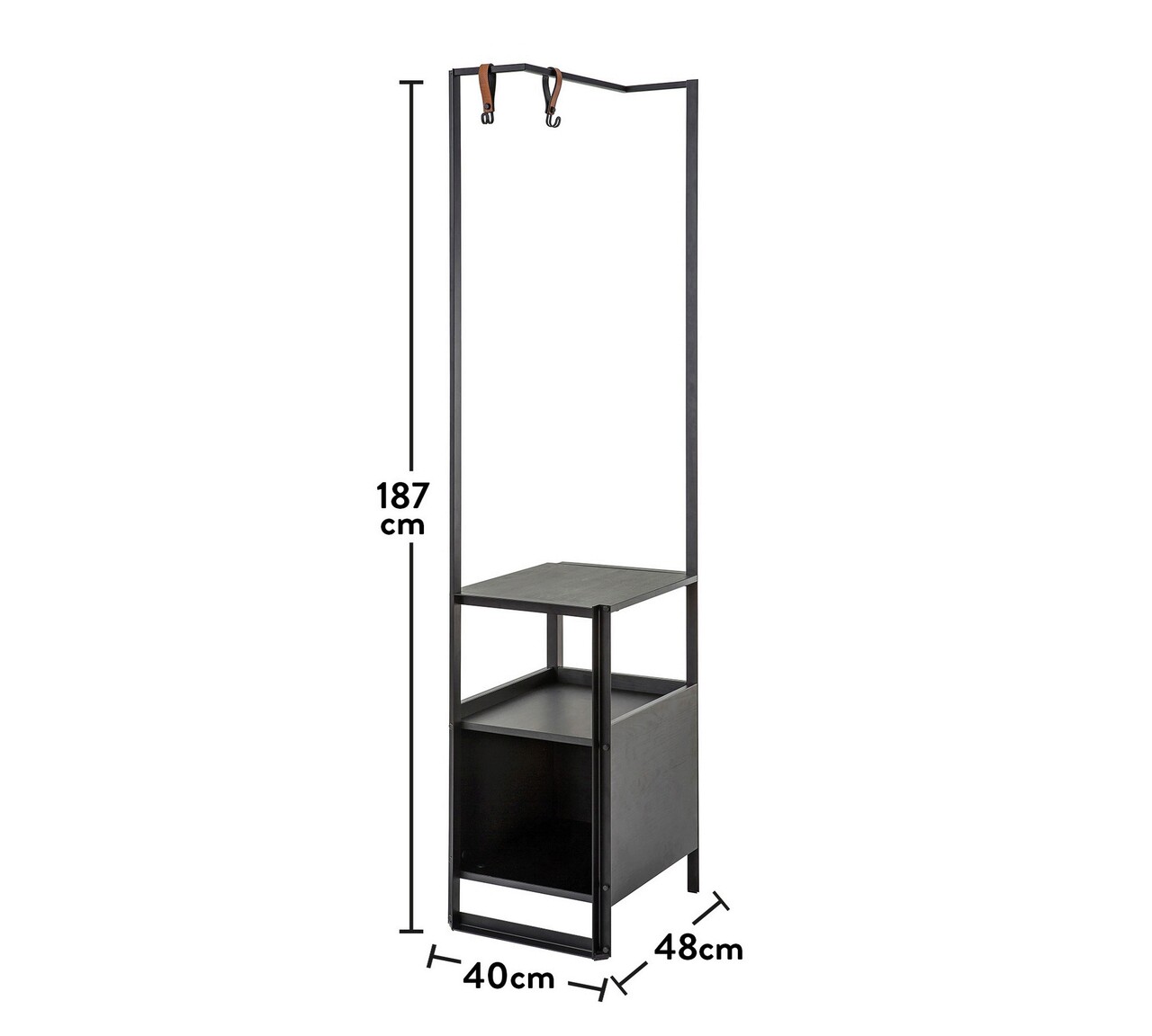 <p>PAL<br/><br/>Grosime: 18 mm<br/><br/>Cadru metalic<br/><br/>Latime: 40 cm <br/>Inaltime: 187 cm <br/>Adancime: 48 cm<br/><br/>3 rafturi<br/><br/>Materiale prietenoase pentru bebelusi/copii<br/><br/>Necesita asamblare<br/><br/>Instructiuni incluse<br/><br/>Serie: Metal întunecat<br/></p>