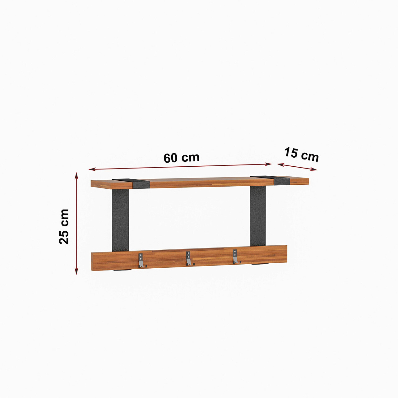 <p>Lemn<br/><br/>Grosime: 18 mm<br/><br/>Latime: 60 cm <br/> Inaltime: 25 cm <br/> Adancime: 15 cm<br/><br/>Raft suspendat<br/><br/>Poate fi fixat pe perete<br/></p>