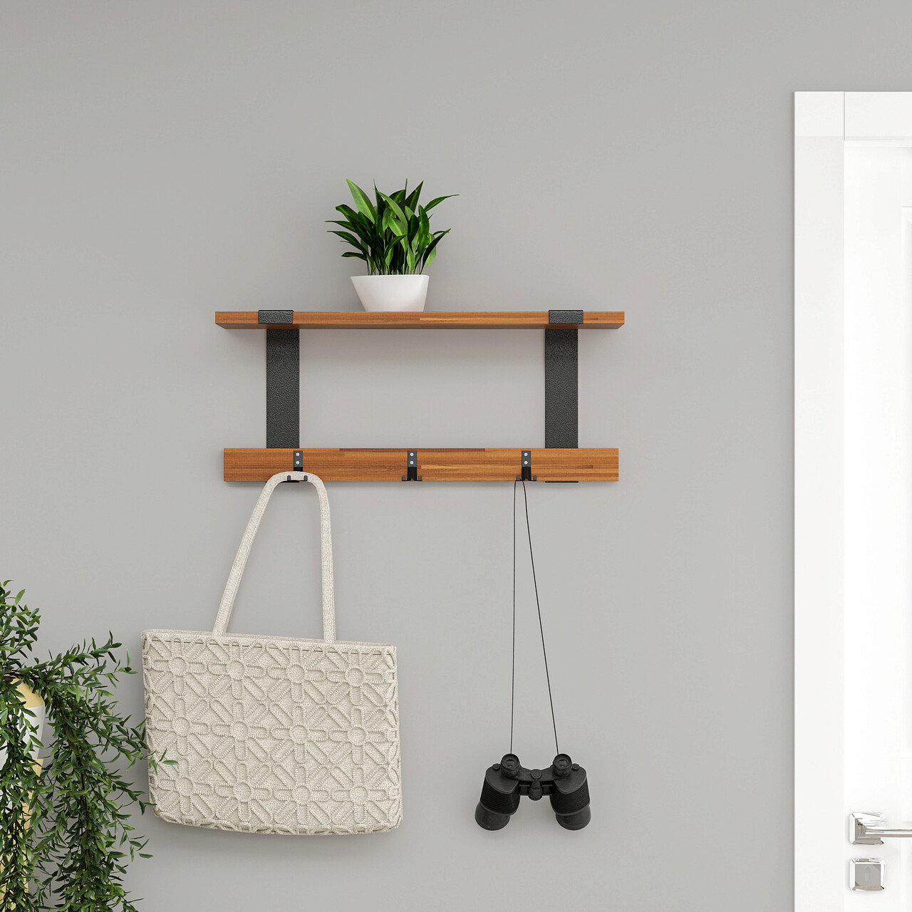 Mezoni-Cuier de perete, Dekzy, DZYD0005, 60x25x15 cm, Maro