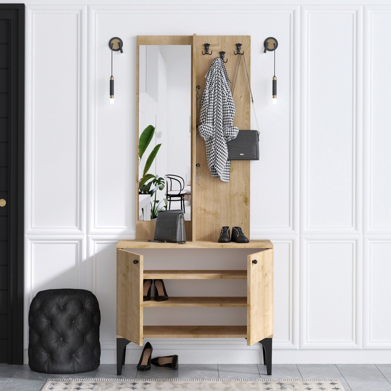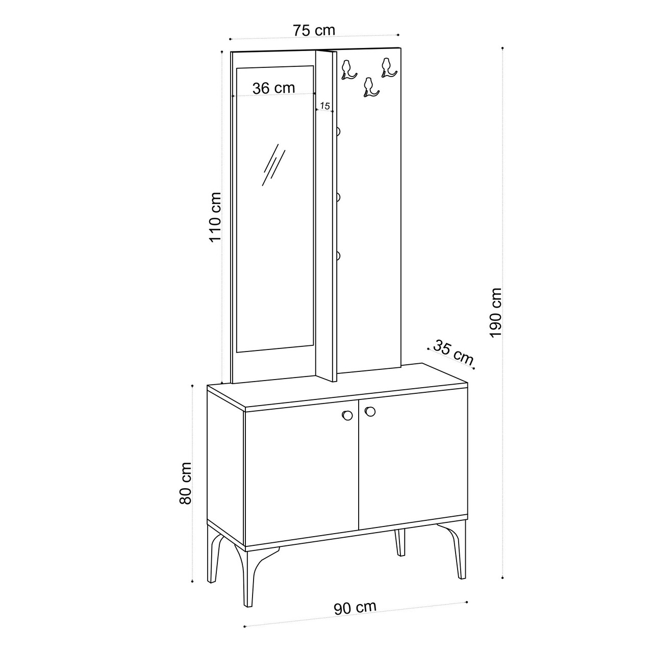<p>PAL<br/><br/>Grosime: 18 mm<br/><br/>Dimensiune corp de mobilier inalt: Latime: 90 cm <br/> Inaltime: 190 cm <br/> Adancime: 35 cm<br/><br/>Raft multifuncțional suspendat<br/><br/>Rafturi numeroase<br/><br/>Poate fi fixat pe perete<br/><br/>Asamblare necesară<br/></p>