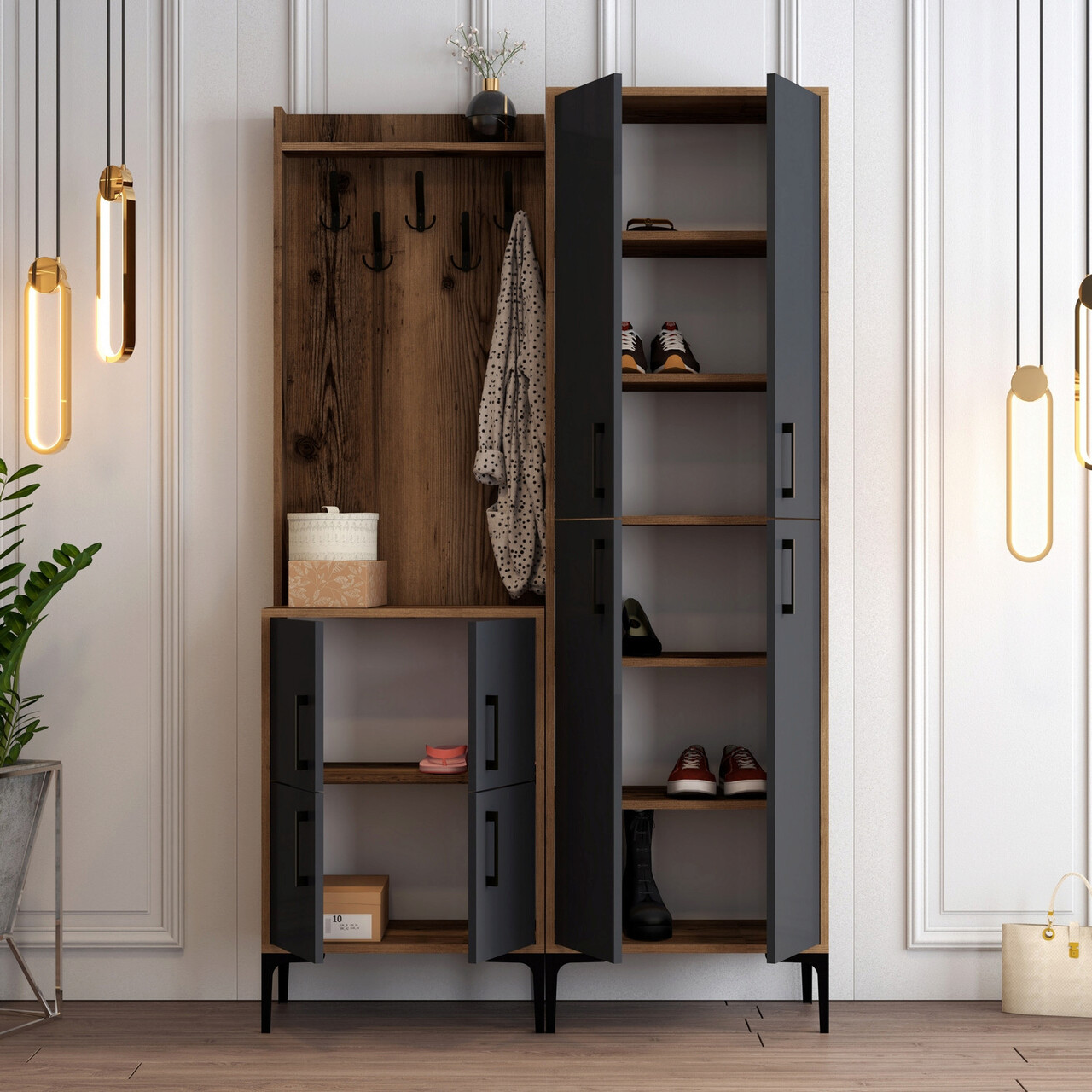 Mezoni-Cuier de perete, Hommy Craft, Berlin BA, 120x200x35 cm, Nuc / Antracit