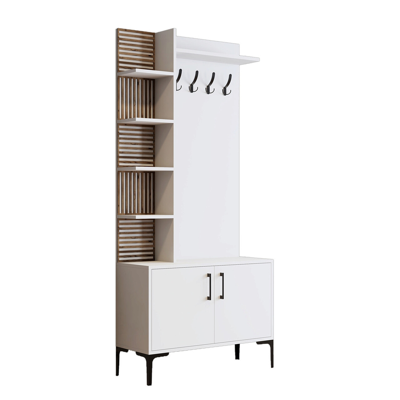 <p>PAL<br/><br/>Grosime:18 mm<br/><br/>Picior metalic, Maner metalic, Agatatoare metalica<br/><br/>Latime: 90 cm <br/>Inaltime: 200 cm <br/>Adancime: 35 cm<br/><br/>Înălțimea raftului: 25,6 cm<br/><br/>Rafturi numeroase<br/><br/>Poate fi fixat pe perete<br/></p>