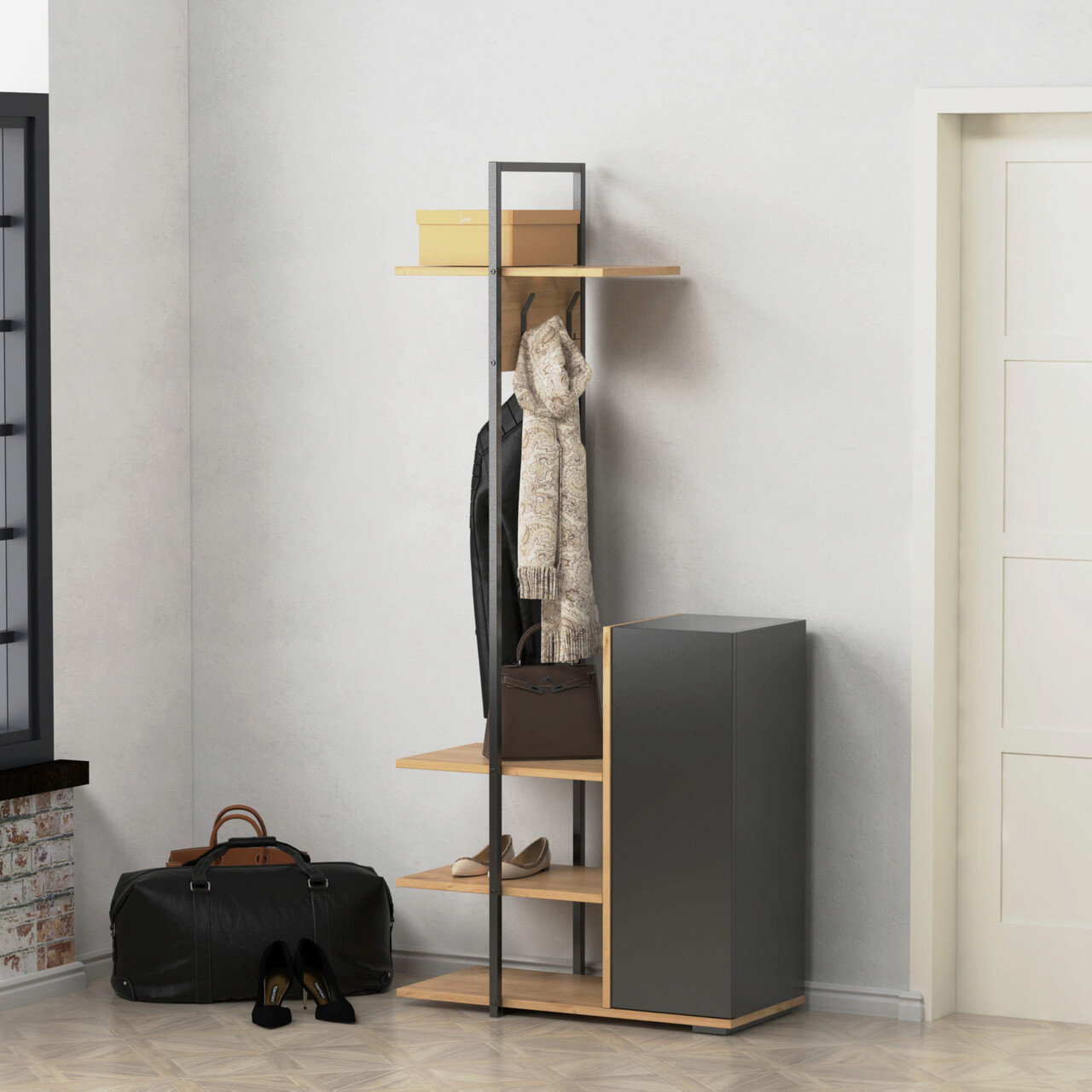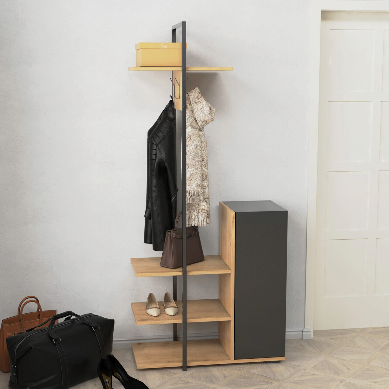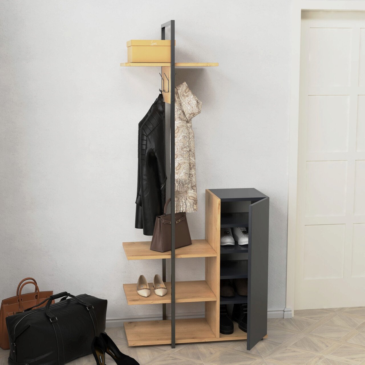 Mezoni-Cuier de perete, Lagomood, Rone, 80x184x35 cm, Antracit / Stejar