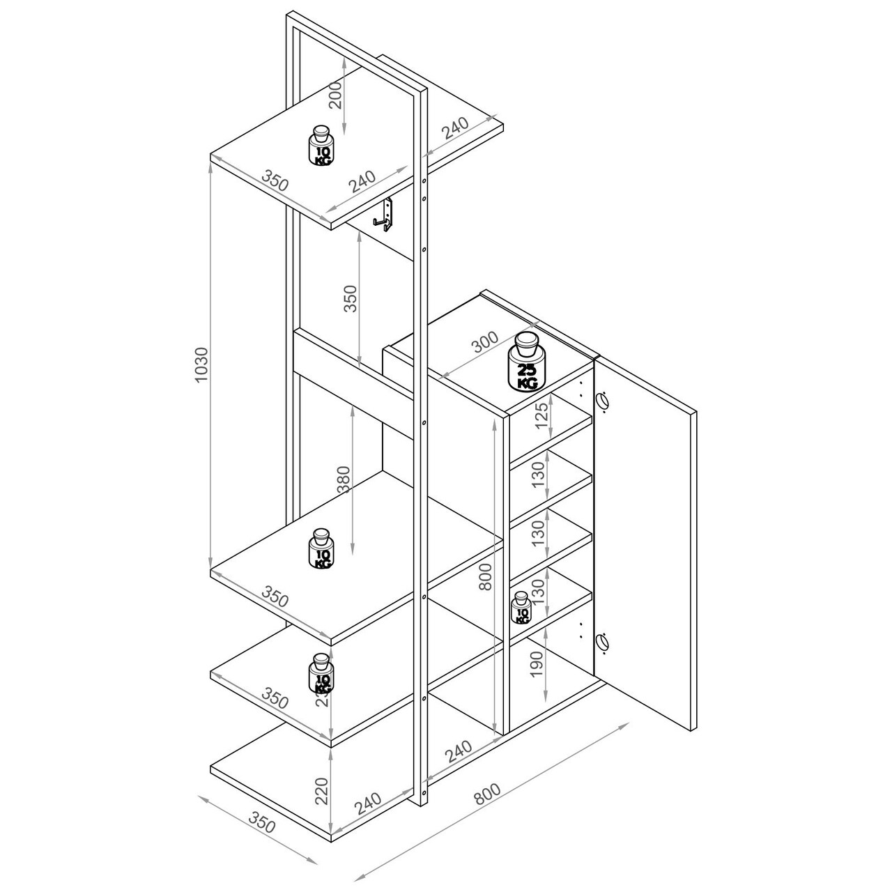 <p>PAL<br/><br/>Grosime: 18 mm<br/><br/>Latime: 80 cm <br/> Inaltime: 184 cm <br/> Adancime: 35 cm<br/><br/>Cadru metalic<br/></p>