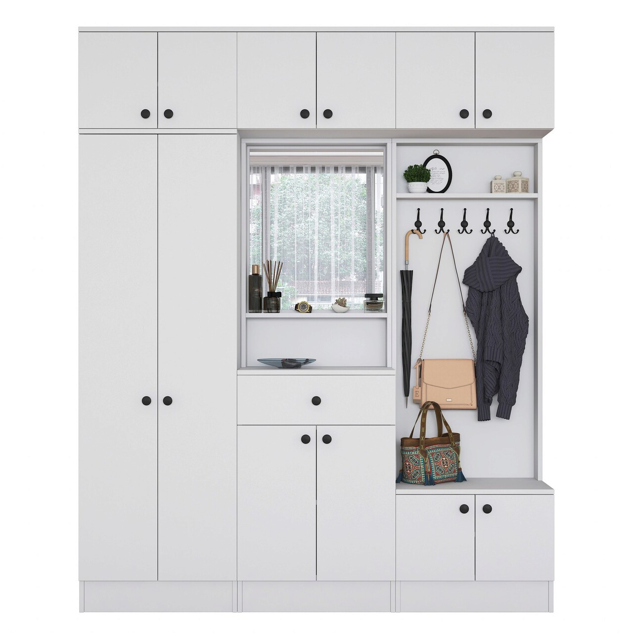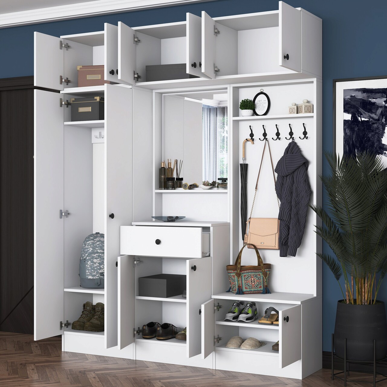 Mezoni-Cuier de perete, Rani, EA108, 179.6×226.4×35.5 cm, PAL, Alb