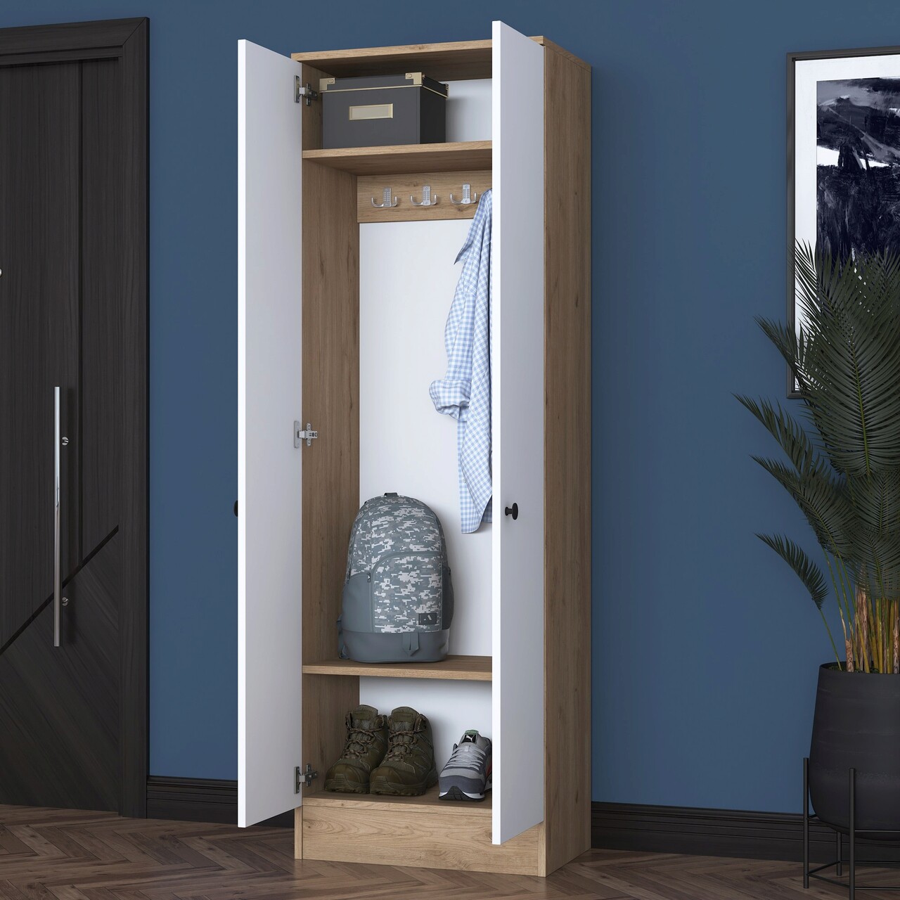 Mezoni-Cuier de perete, Rani, P6- M14, 59.8×182.8×37.5 cm, PAL, Alb/Maro