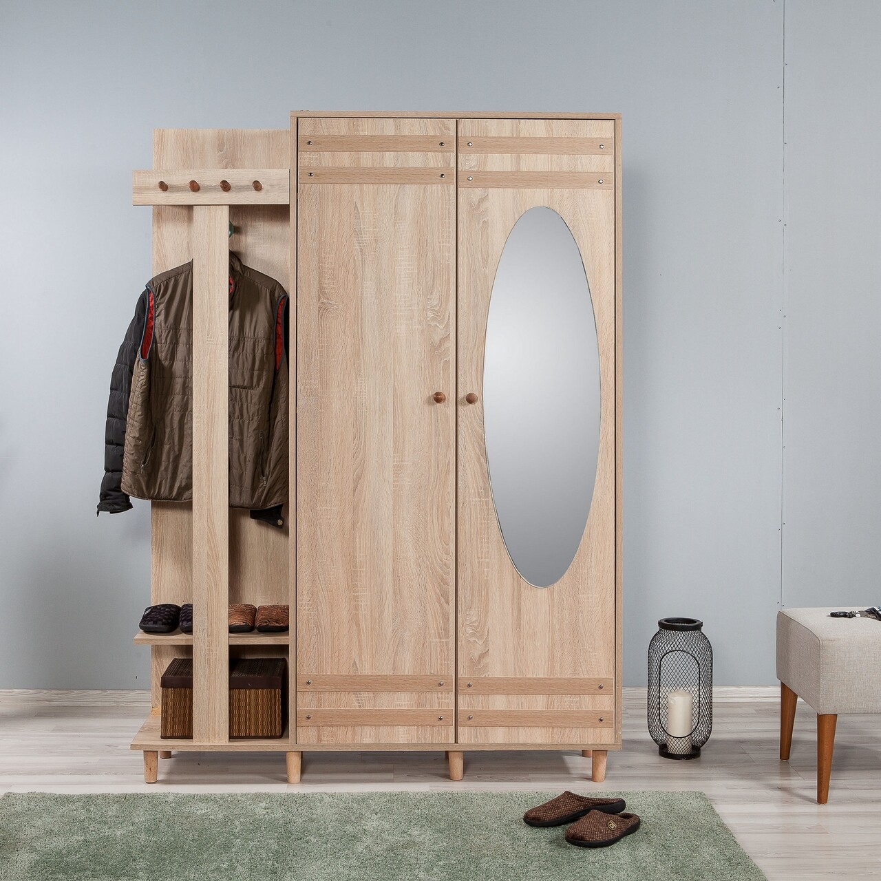 Mezoni-Dulap cu pantofar, cuier si oglinda Garmanto 135-200, Vella, 135x36x194 cm, multicolor