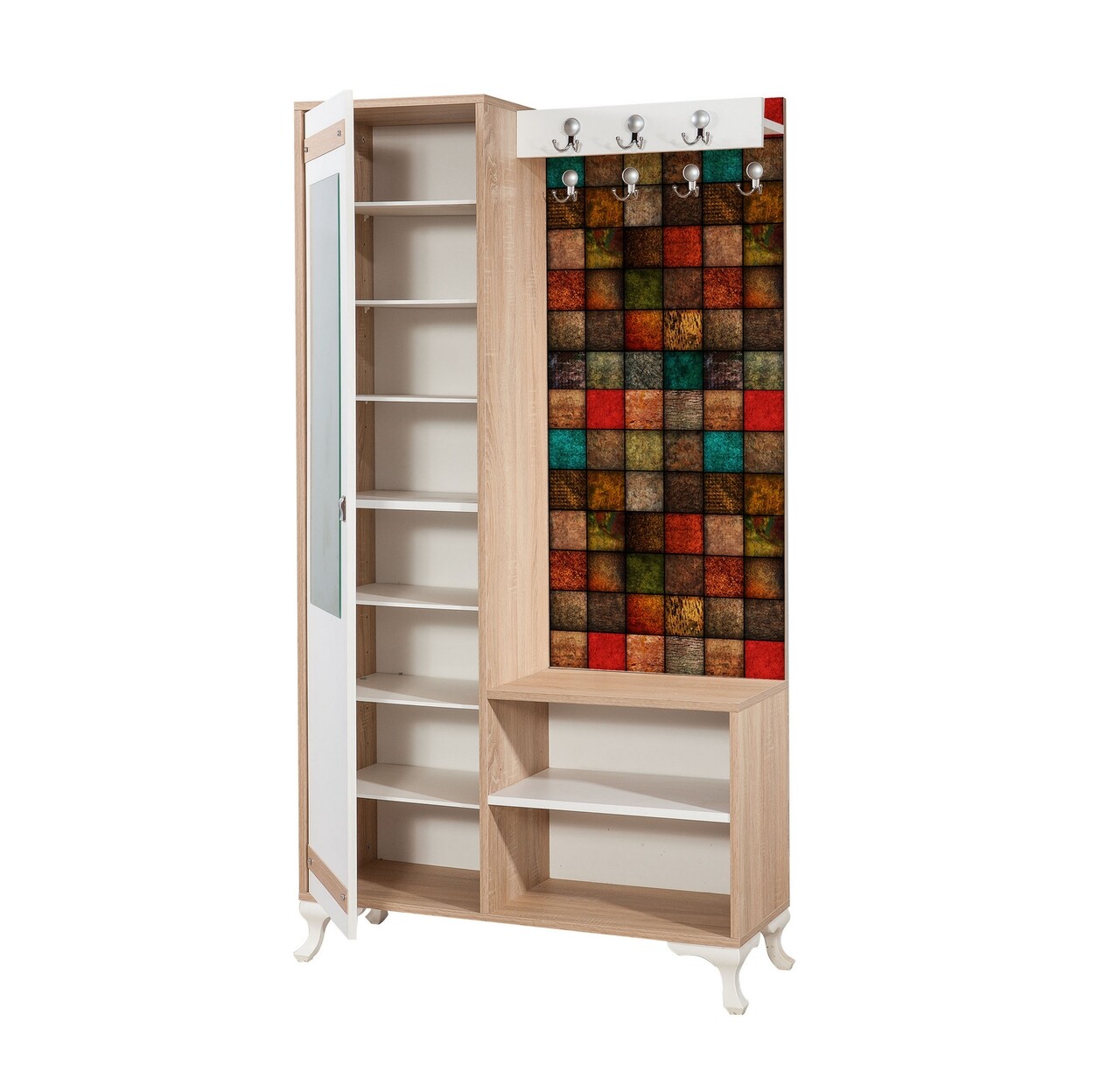 Mezoni-Dulap cu pantofar, cuier si oglinda Inci 723, Vella, 125x36x195 cm, multicolor