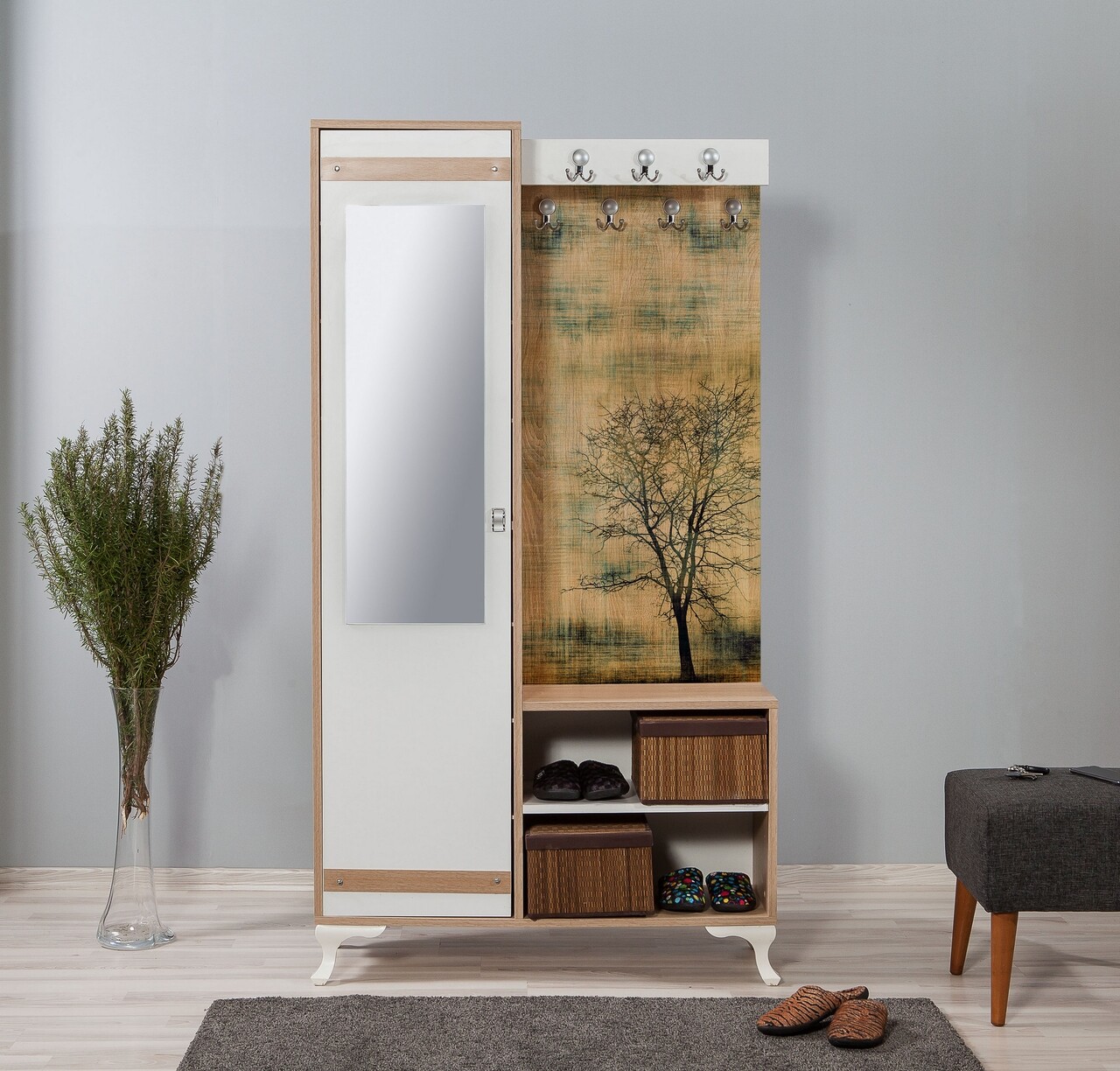Mezoni-Dulap cu pantofar, cuier si oglinda Inci 729, Vella, 125x36x195 cm, multicolor
