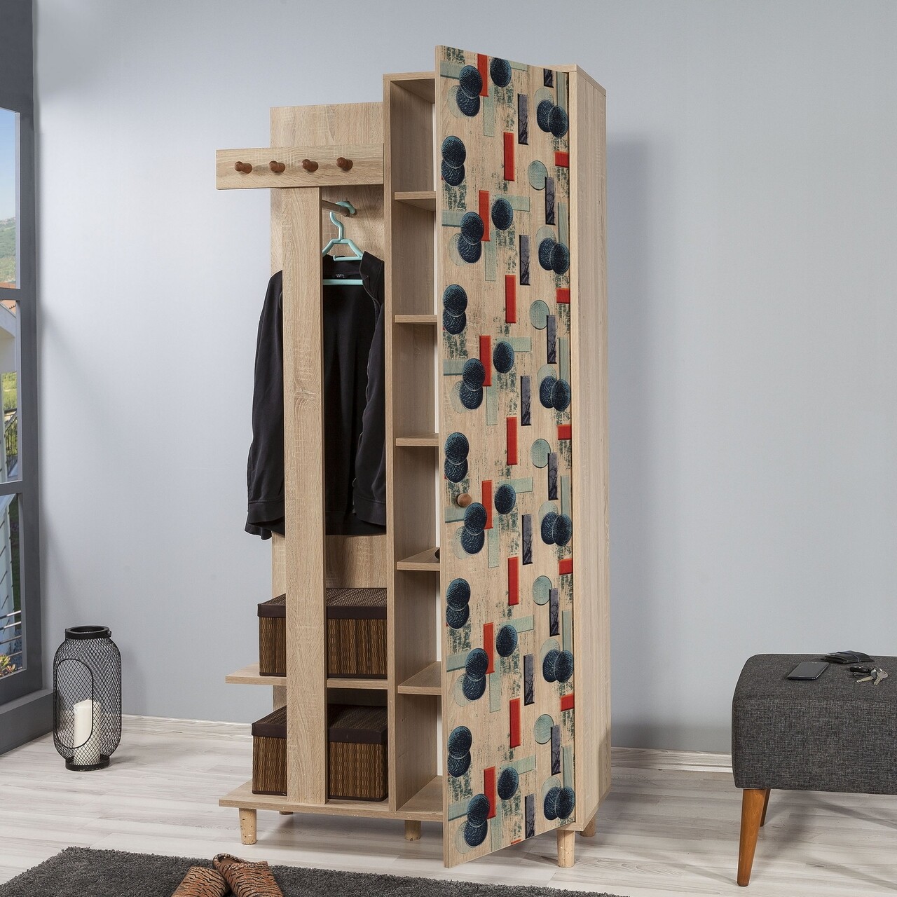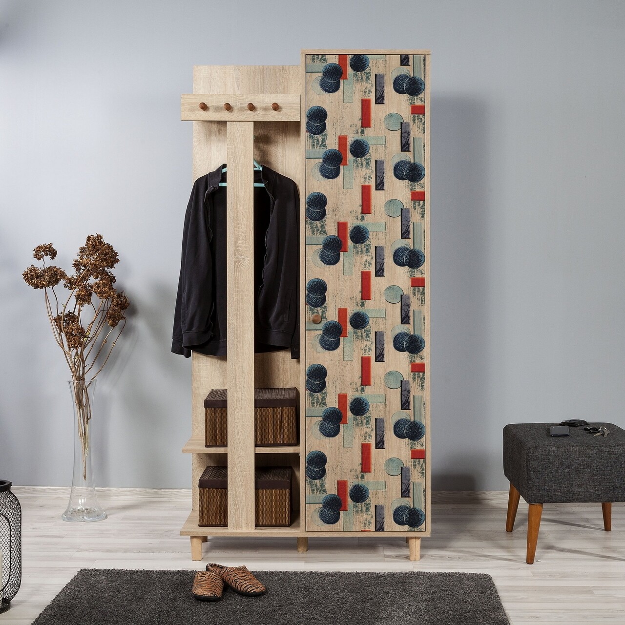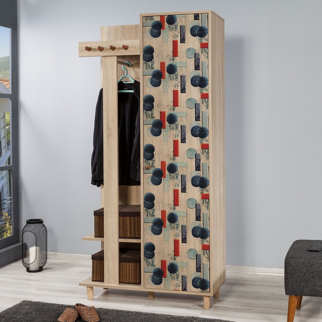 Mezoni-Dulap cu pantofar si cuier Garmanto 90-520, Vella, 90x36x194 cm, multicolor