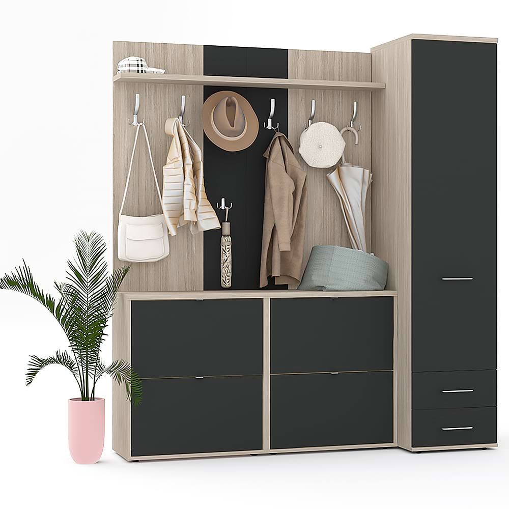 <p>Mobilier de hol RIVA cu pantofar dublu in configuratia RIVA2 cu decorurile oak si antracit face parte din Colectia de mobilier modular RIVA.</p><p>Configuratia RIVA2 ofera spatiu de depozitare din belsug – 1 dulap cu bara umerase pentru haine lungi, sertare pentru manusi, esarfe si fesuri, 2 pantofare duble</p><p>pentru a depozita pantofii, agatatori de cuier pentru hainele de zi cu zi si nu in ultimul rand o polita generoasa pentru sepci si palarii.</p><p><br></p><p><b><span style="color: rgb(36, 64, 97);">Exclusiv TAMOS! Pret de producator , livrare rapida si Gratuita !</span></b></p><p><img src="https://www2.tamos.ro/images/companies/1/Icons%20TAMOS/untitled%20folder/Produs%20configurabil%2050.png?1655809907279" style="cursor: pointer;"> <span style="color: rgb(36, 64, 97);"><b>Mobilier hol configurabil</b></span></p><ul><li>configurezi materialele, decor, PAL</li><li>configurezi complemente</li></ul><p><b><img src="https://www2.tamos.ro/images/companies/1/Icons%20TAMOS/untitled%20folder/Mobilier%20kit%2050%20opt.png?1655809961422" style="cursor: pointer;"> </b><span style="color: rgb(36, 64, 97);"><b>Caracteristici si avantaje Hol RIVA2</b></span></p><ul><li>6 corpuri independente ce se pot monta in diferite compozitii</li><li>mobilier kit, se livreaza demontat, ambalat in cutii de carton</li><li>Kitul contine schita montaj, feronerie, certificat garantie si conformitate</li></ul><p><img src="https://www2.tamos.ro/images/companies/1/Icons%20TAMOS/untitled%20folder/Dimensiuni%20comoda%2050%20opt.png?1655888442655"> <span style="color: rgb(36, 64, 97);"><b>Pantofar 2 usi – 2 bucati</b></span><br></p><ul><li>Dimensiuni comoda pantofar 70x34x76cm (LxlxH)</li><li>Dimensiuni cuier 70x34x122cm (LxlxH)</li></ul><figure><img src="https://www2.tamos.ro/images/companies/1/Icons%20TAMOS/untitled%20folder/Dimensiuni%20dulap%2050%20opt.png?1655810101336" style="cursor: pointer;"> <b><span style="color: rgb(36, 64, 97);">Dulap haine cu sertare si bare de haine – 1 bucata</span></b></figure><ul><li>Dulap cu 1 usa, 2 sertare si bara haine – 45 x 50 x 200 cm (LxlxH)</li></ul><p><b><img src="https://www2.tamos.ro/images/companies/1/Icons%20TAMOS/untitled%20folder/Complemente%2050%20opt.png?1655810348438" style="cursor: pointer;"> <span style="color: rgb(36, 64, 97);">Complementele – se achizitioneaza separat conta cost</span></b></p><ul><li>Oglinda – optional </li></ul><p><img src="https://www2.tamos.ro/images/companies/1/Icons%20TAMOS/untitled%20folder/Materiale%2050%20opt.png?1655810439323" style="cursor: pointer;"> <b><span style="color: rgb(36, 64, 97);">Materiale</span></b></p><ul><li>PAL dublu melaminat 16mm, 25mm</li><li>Cant ABS 0,4mm si 2mm</li></ul><ul><li>Decoruri disponibile / combinatii culori:</li><li>PAL Oak + PAL Antracit</li></ul><p><img src="https://www2.tamos.ro/images/companies/1/Icons%20TAMOS/untitled%20folder/Garantie%2050%20opt.png?1655810529299" style="cursor: pointer;"> <b><span style="color: rgb(36, 64, 97);">Garantie producator 24 luni</span></b></p><p><span style="font-size: small; font-family: arial, helvetica, sans-serif;"></span></p><p><span></span></p><p><img src="https://www2.tamos.ro/images/companies/1/Icons%20TAMOS/untitled%20folder/Livrare%20gratuita%2050%20opt.png?1655810643497" style="cursor: pointer;"> <span style="color: rgb(36, 64, 97);"><b>Transport GRATUIT in toata tara</b></span></p><p><span style="font-family: arial, helvetica, sans-serif; font-size: small;">*Accesoriile din imagine nu sunt incluse in pret( haine, plante, perne, lampi, veioze…)</span></p><p><br></p><p><span style="color: #ff0000;"><strong></strong></span></p>