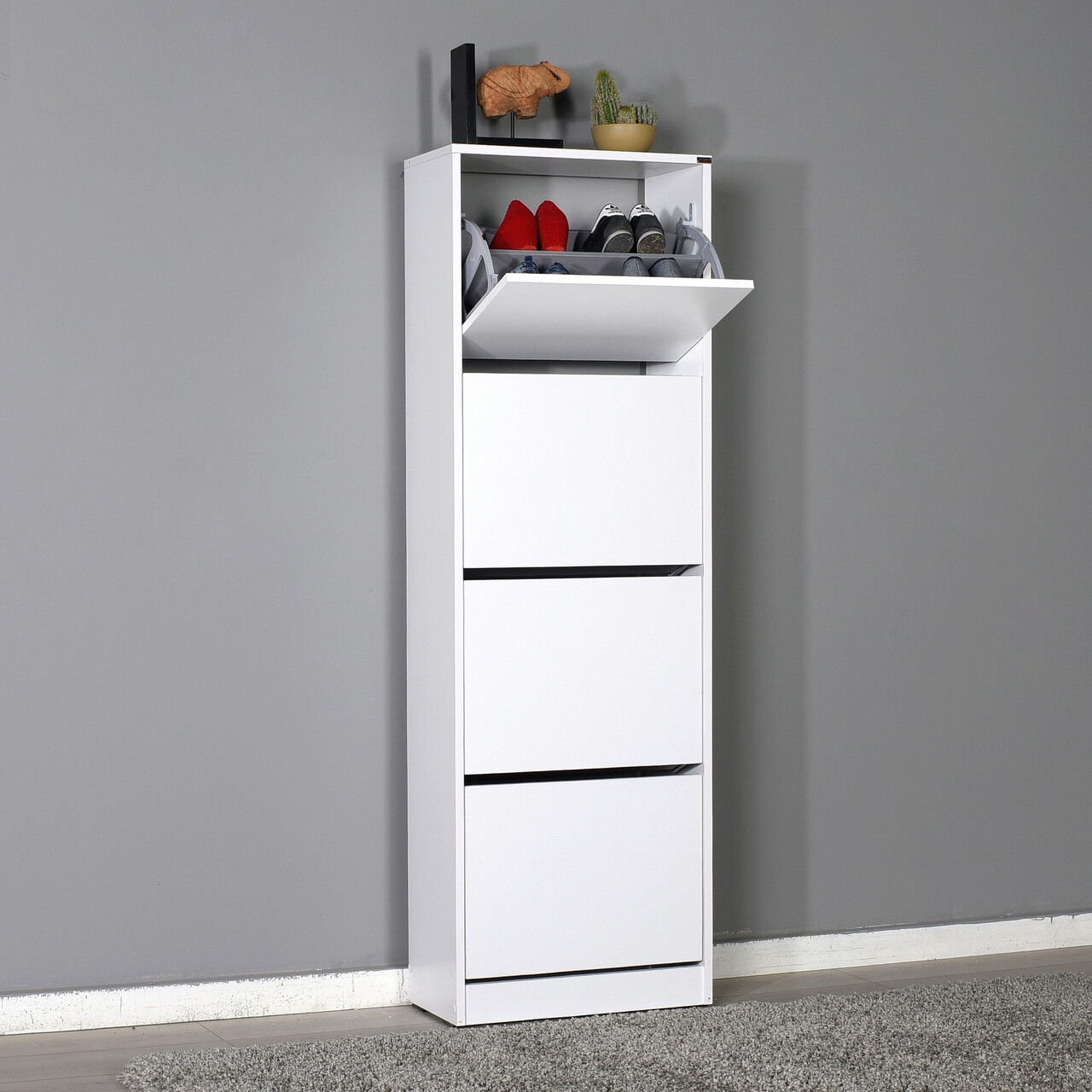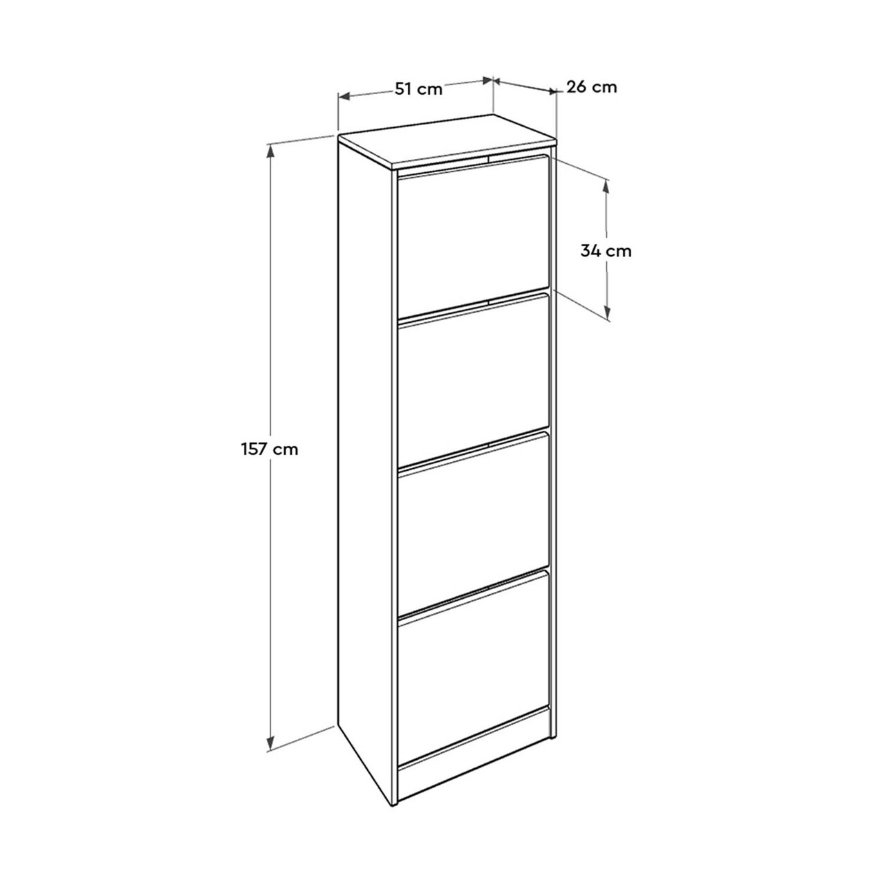 <p>Grosime: 16 mm<br/><br/>Latime: 51 cm <br/>Inaltime: 157 cm <br/>Adancime: 26 cm<br/><br/>Inaltime sertar: 34 cm<br/><br/>4 sertare<br/><br/>Rafturi numeroase<br/><br/>Poate fi fixat pe perete<br/></p>