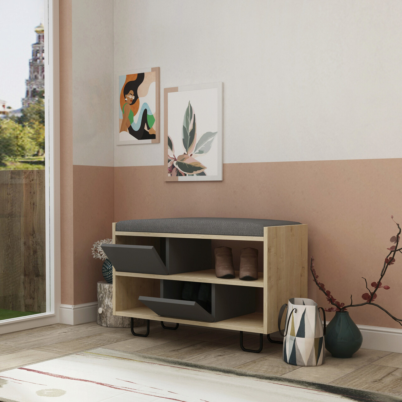 Pantofar, Decortie, Troy, 83.5×53.5×35.5 cm, Stejar / Antracit
