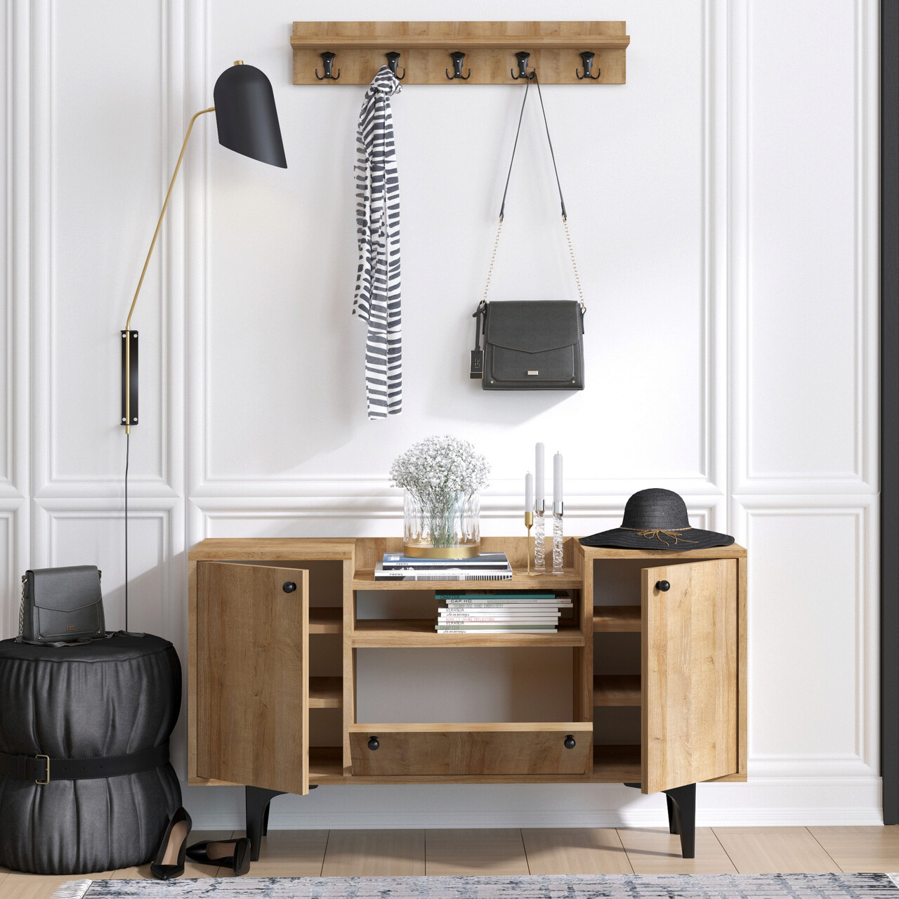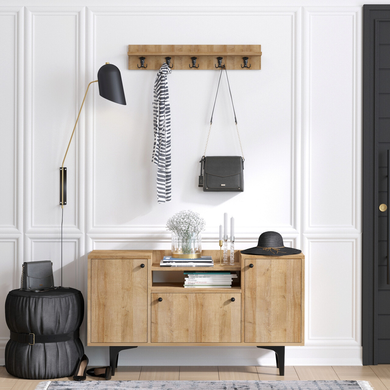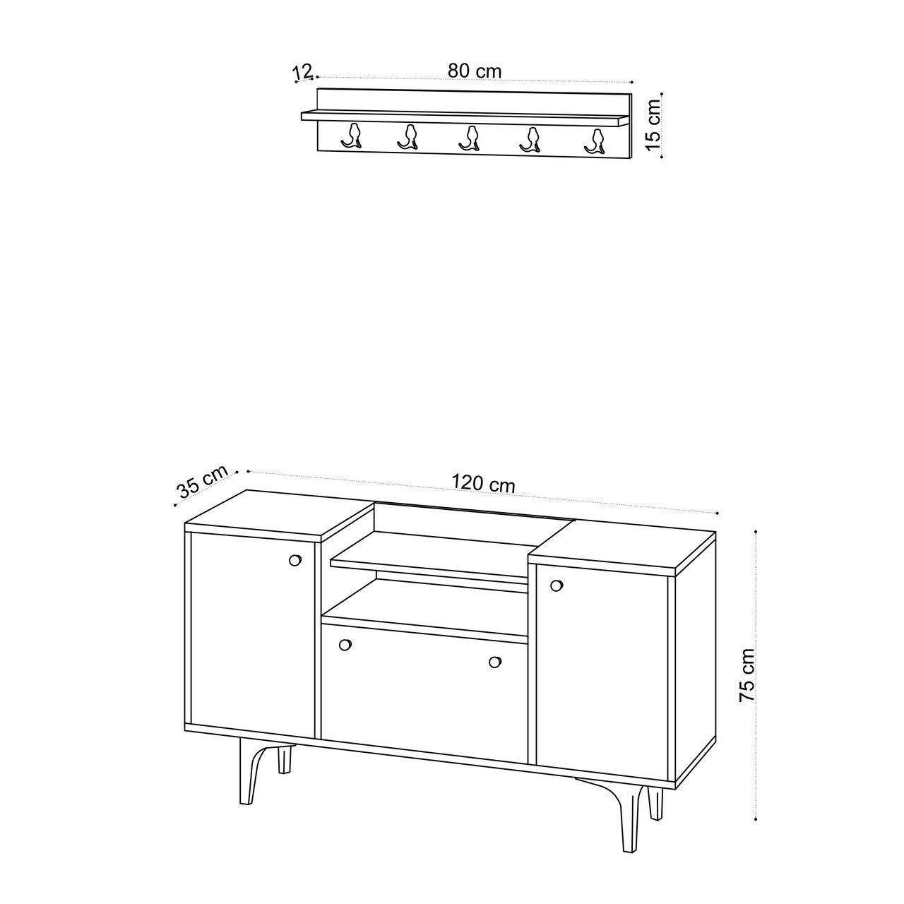 <p>PAL<br/><br/>Grosime: 18 mm<br/><br/>Dimensiune dulap pantofi Latime: 120 cm <br/> Inaltime: 75 cm <br/> Adancime: 35 cm<br/><br/>Mărimea suportului pentru haine: <br/>Latime: 80 cm <br/>Inaltime: 15 cm <br/>Adancime: 12 cm<br/><br/>Picioare din plastic<br/><br/>Raft suspendat<br/><br/>Rafturi numeroase<br/><br/>Poate fi fixat pe perete<br/></p>