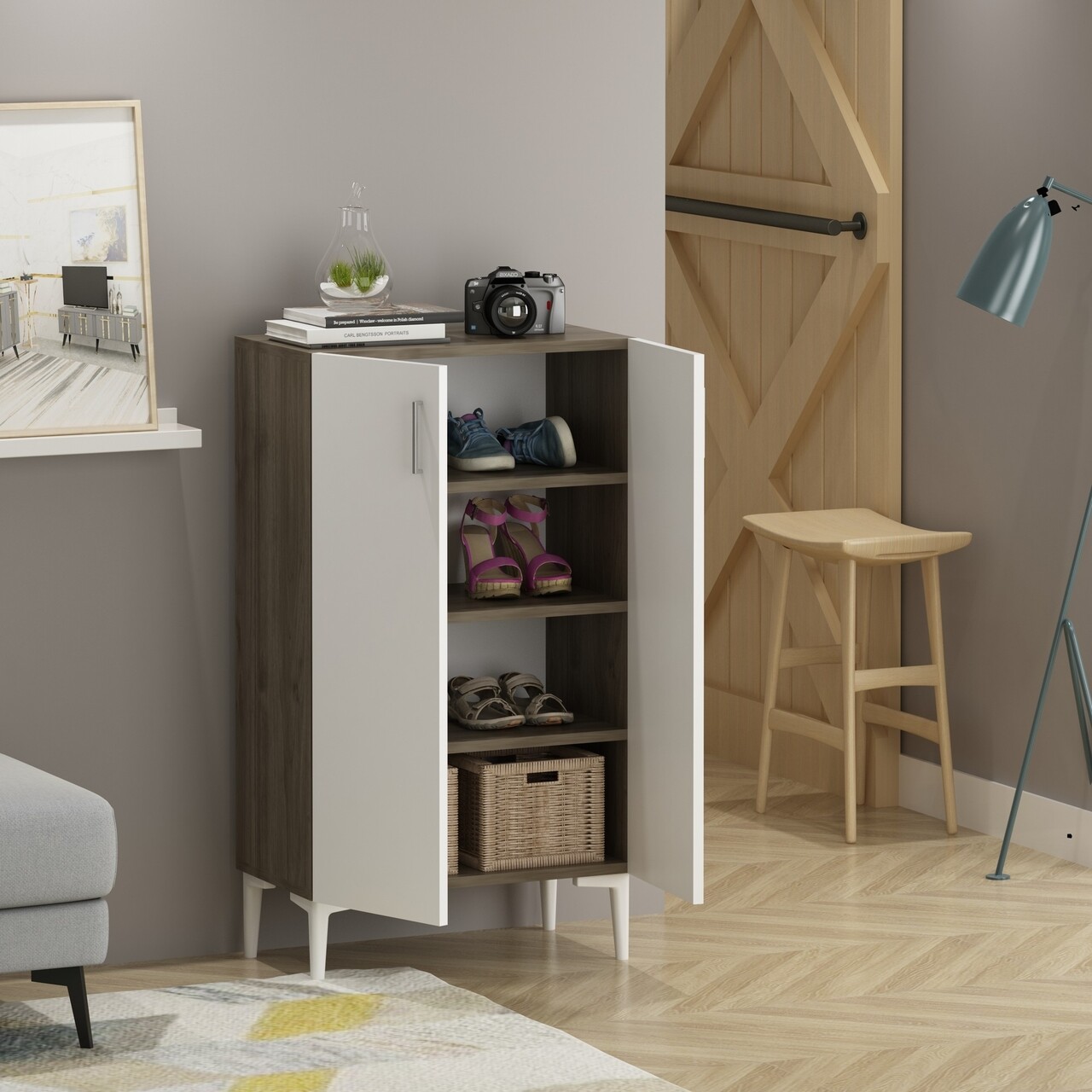 Pantofar, Olivia, Chetri, 60 x 105 x 34 cm, pal melaminat, nuc/alb