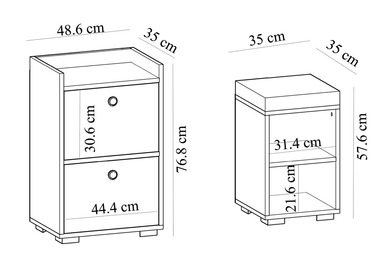 <p>Grosime:18 mm<br/><br/>Latime: 48,6 cm <br/> Inaltime: 76,8 cm <br/> Adancime: 35 cm<br/><br/>Mărimea pieptului: Latime: 44,4 cm <br/> Inaltime: 30,6 cm<br/><br/>Latime: 35 cm <br/> Inaltime: 57,6 cm <br/> Adancime: 35 cm<br/><br/>Înălțimea raftului de mijloc: 21,6 cm<br/><br/>Spatiu de depozitare suplimentar<br/></p>