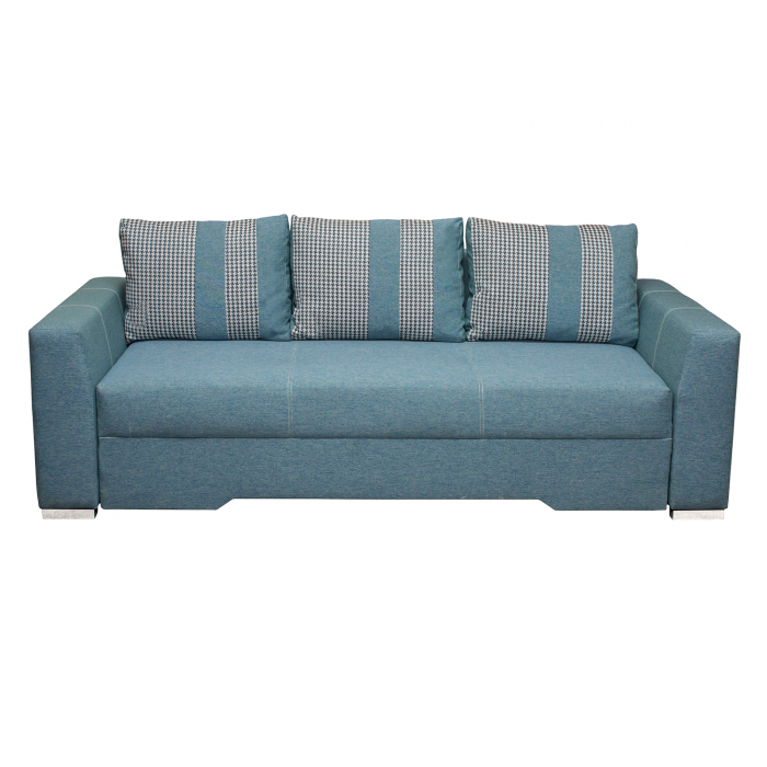 Canapea ALESSIA extensibila, 3 locuri, cu arcuri si lada depozitare, albastru, 230x100x77 cm
