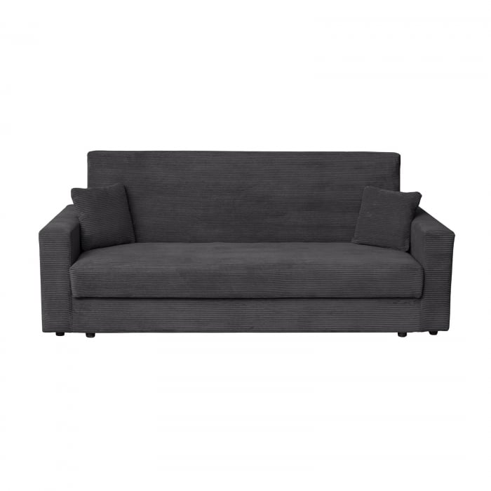 Canapea CORINNE LUX extensibila, 3 locuri, cu lada depozitare, gri inchis, 220x90x96 cm