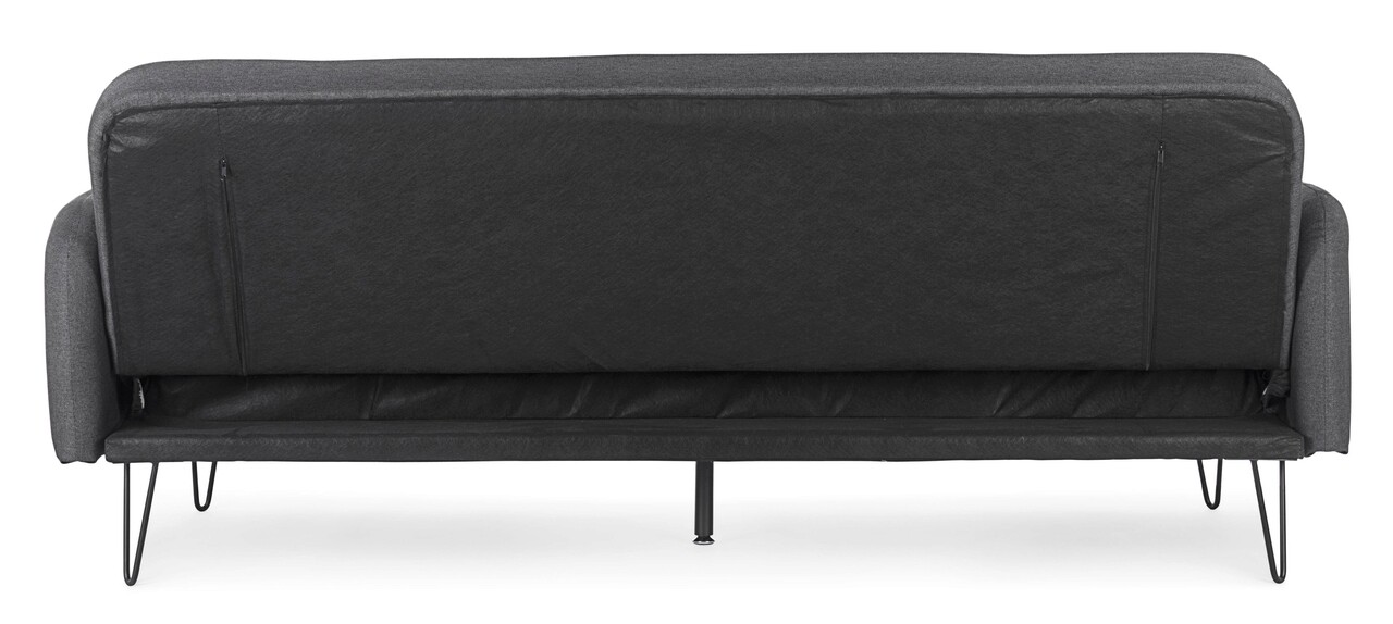 MentiuniCadru din lemn de eucalipt.Picioare din otel acoperit cu pulbere epoxidica. Umplutura din spuma poliuretanica: densitate de la 23 Kg/M3 la 50 Kg/M3.Husa din tesatura 100% poliester. Necesita asamblare.Inaltime sezut: 43 cm.Inaltime brate: 59 cm.Dimensiuni canapea extinsa: 180 x 105 x 43 cm.