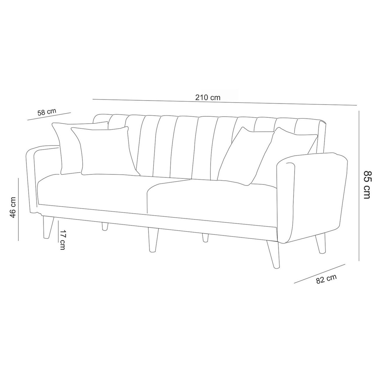 Tesatura: InPicioare din lemn (17 cm)Spuma 28 DNSAdancime: 82 cmAdâncimea scaunului: 58 cmInaltime sezut: 46 cmDimensiunea patului: Lăţime: 180 cm Adancime: 105 cmExtensibil