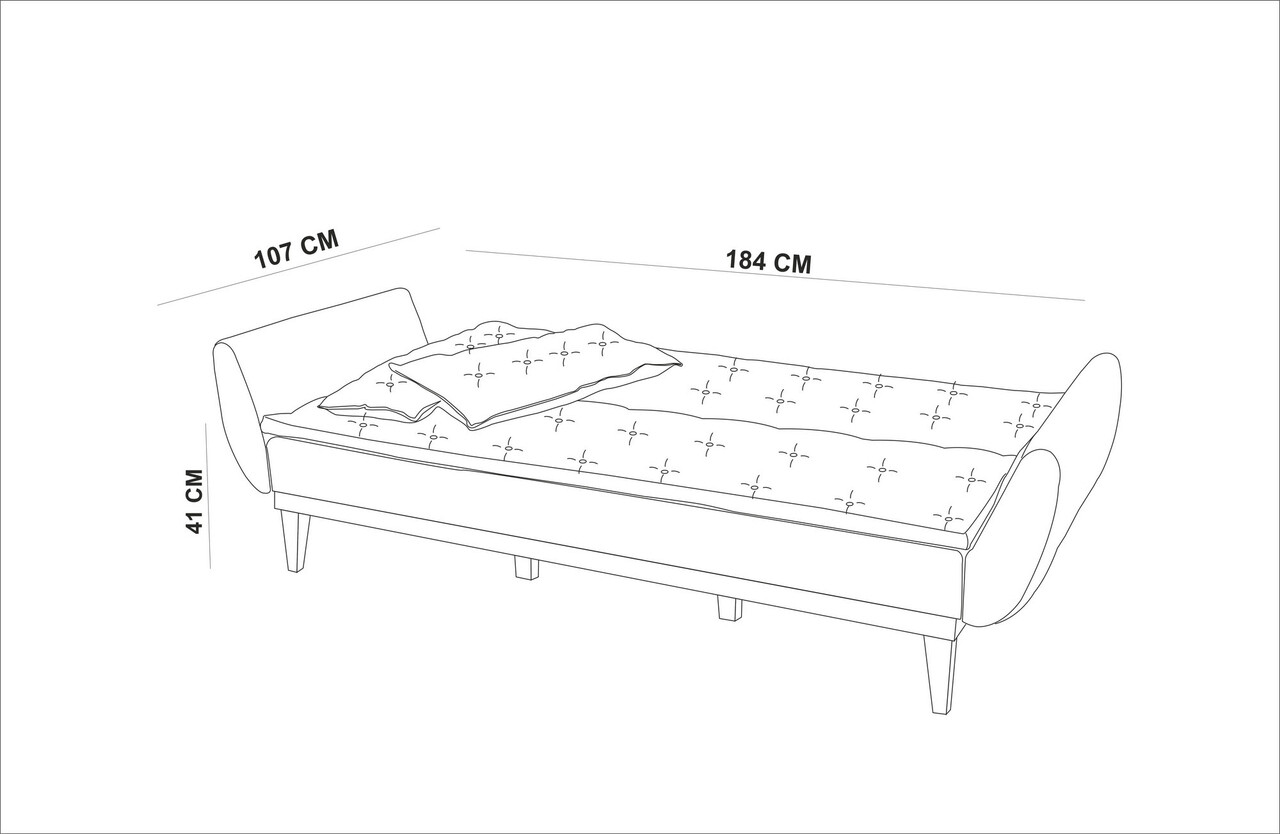 Tesatura: InPicioare din lemn (17 cm)Spuma 28 DNSAdancime: 82 cmAdâncimea scaunului: 55 cmInaltime sezut: 41 cmDimensiunea patului: Latime: 184 cm Adancime: 107 cmExtensibil
