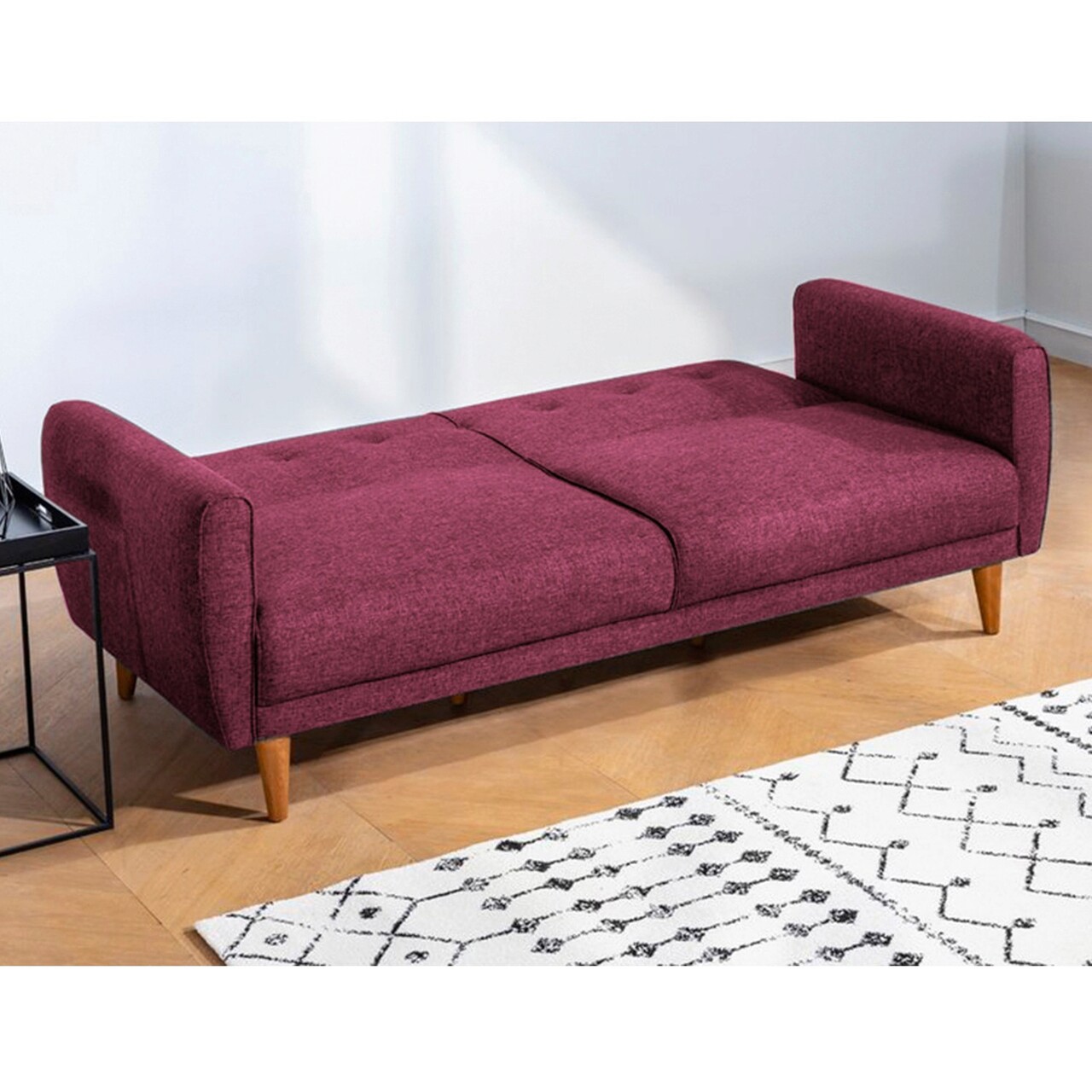 Tesatura: InPicioare din lemn (17 cm)Spuma 28 DNSAdancime: 80 cmAdâncimea scaunului: 55 cmInaltime sezut: 42 cmDimensiunea patului: Lăţime: 180 cm Adancime: 105 cmExtensibil