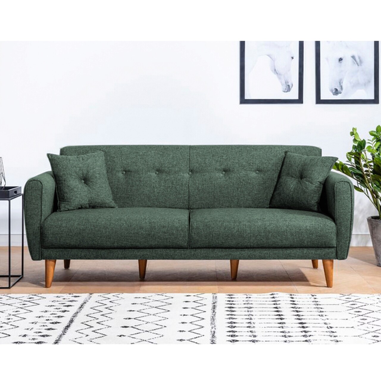 Canapea extensibila cu 3 locuri, Unique Design, 867UNQ1361, Lemn de carpen, Verde