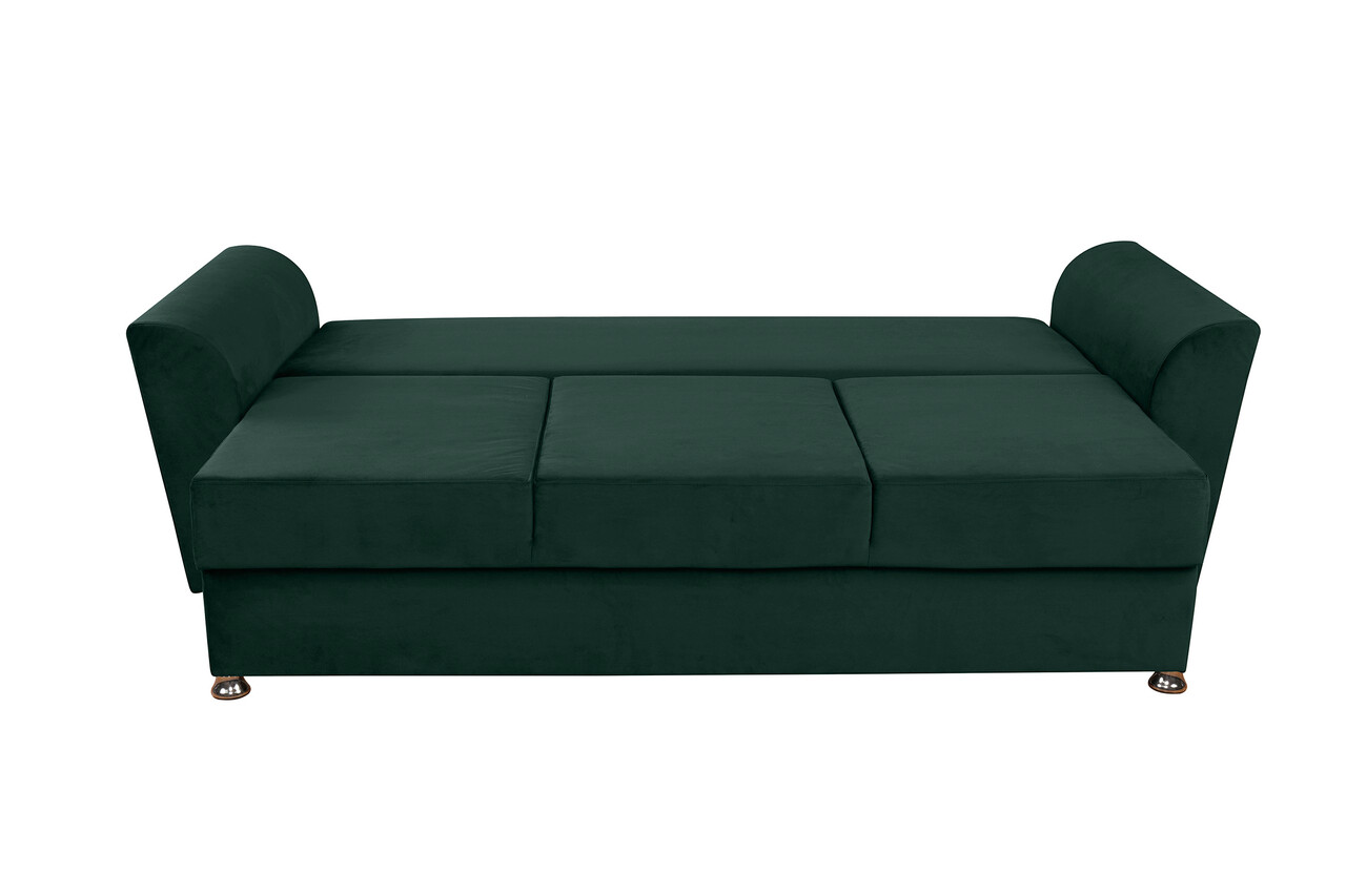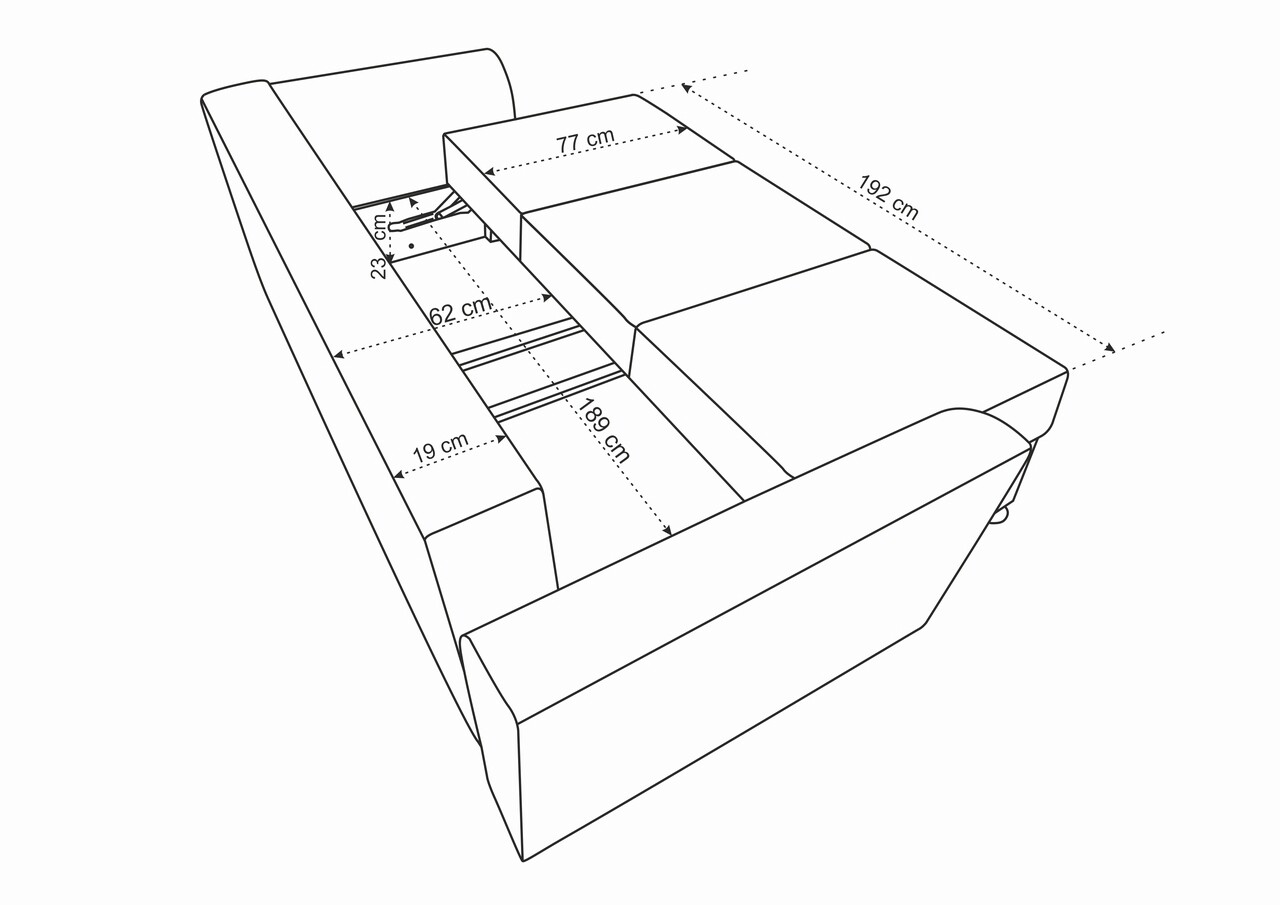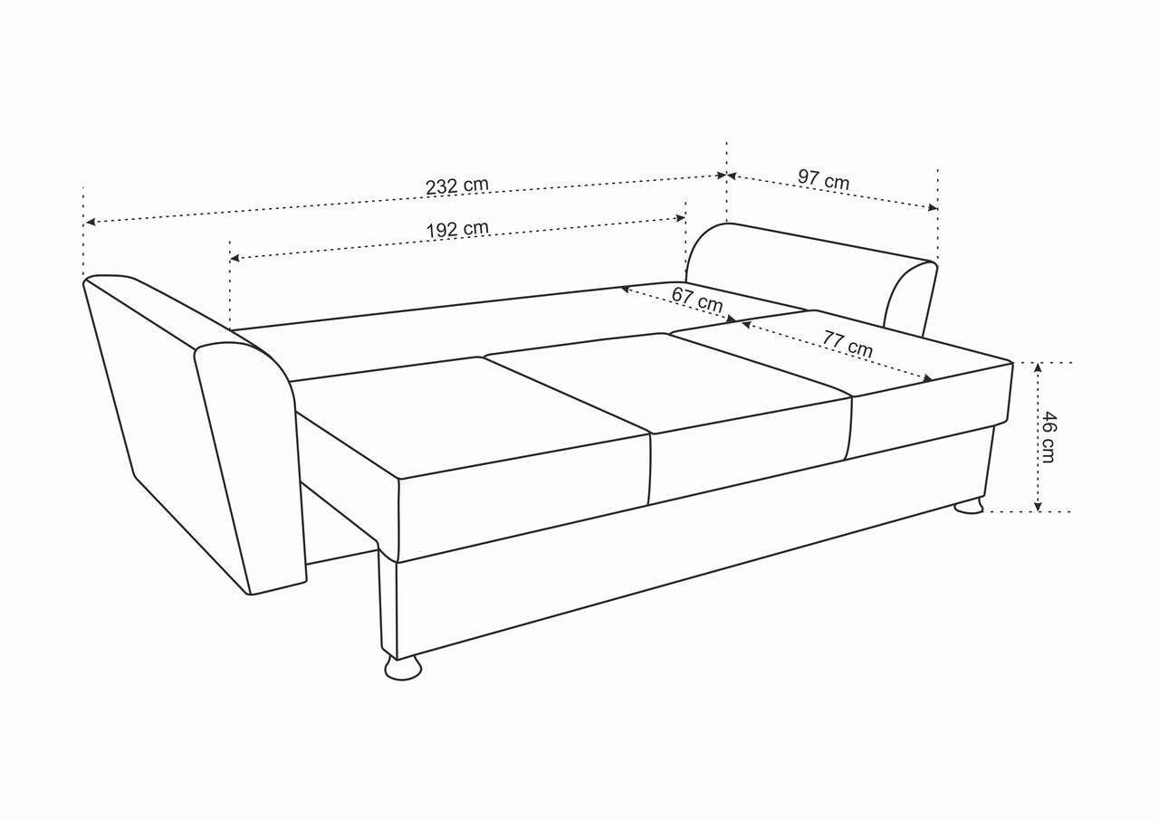 Cu un design contemporan, canapeaua Ferrara oferea un aspect relaxat, dar si sofisticat oricarui spatiu. Aceasta piesa de mobilier catifelata si moale, nu numai ca adauga o nota de lux incaperii, dar este si extrem de practica, transformandu-se intr-un pat incapator ori de cate ori ai nevoie.Extensibila, dureaza doar cateva secunde si nu necesita exces de efort pentru a se transforma intr-un pat cu o suprafata generoasa de dormit de 144 x 192 cm. Lada de depozitare reprezinta un avantaj important, fiind spatioasa si usor de accesat.Canapeaua Ferrara imbina luxul contemporan cu confortul maxim, oferind rasfat complet, indiferent de modalitatea in care alegi sa o utilizezi.Cu structura riguroasa si tesaturi frumoase, aceasta canapea este rezistenta si comoda, pernele fiind special concepute cu suport lombar ergonomic.Specificatii:Suprafata de dormit: 144 x 192 x 46 cmLungime : 232 cmLatime: 97 cmInaltime: 75 cm (fara perne) Material:- exterior: material textil- structura interioara: rama de lemn, spuma poliuretanica, arcuri sinusoidale, PAL Pernele sunt incluse.