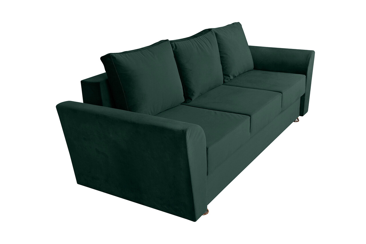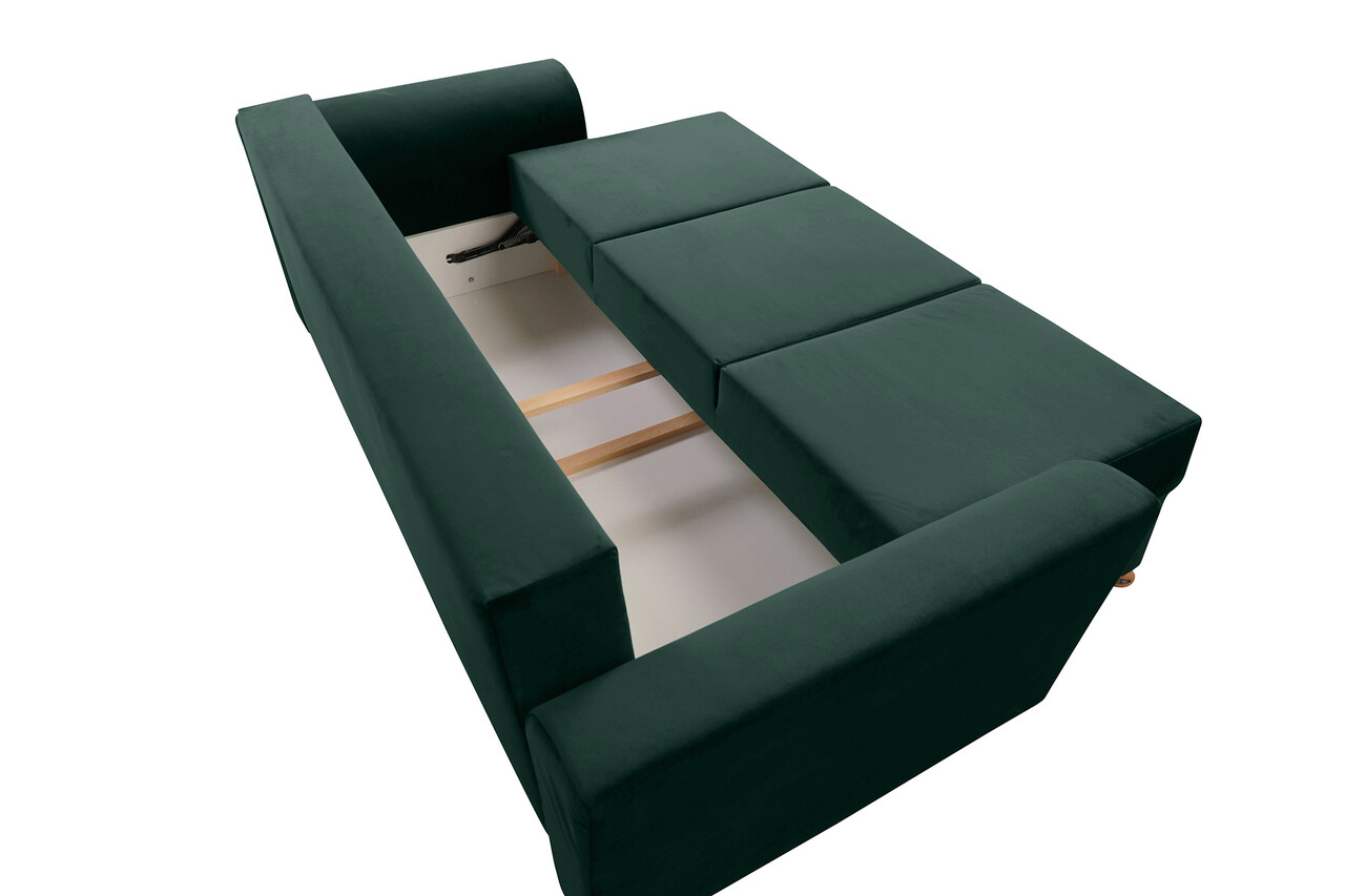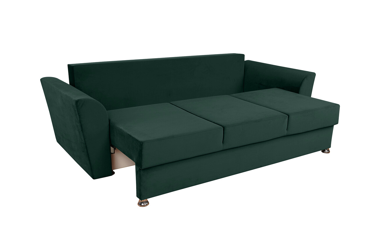 Cu un design contemporan, canapeaua Ferrara oferea un aspect relaxat, dar si sofisticat oricarui spatiu. Aceasta piesa de mobilier catifelata si moale, nu numai ca adauga o nota de lux incaperii, dar este si extrem de practica, transformandu-se intr-un pat incapator ori de cate ori ai nevoie.Extensibila, dureaza doar cateva secunde si nu necesita exces de efort pentru a se transforma intr-un pat cu o suprafata generoasa de dormit de 144 x 192 cm. Lada de depozitare reprezinta un avantaj important, fiind spatioasa si usor de accesat.Canapeaua Ferrara imbina luxul contemporan cu confortul maxim, oferind rasfat complet, indiferent de modalitatea in care alegi sa o utilizezi.Cu structura riguroasa si tesaturi frumoase, aceasta canapea este rezistenta si comoda, pernele fiind special concepute cu suport lombar ergonomic.Specificatii:Suprafata de dormit: 144 x 192 x 46 cmLungime : 232 cmLatime: 97 cmInaltime: 75 cm (fara perne) Material:- exterior: material textil- structura interioara: rama de lemn, spuma poliuretanica, arcuri sinusoidale, PAL Pernele sunt incluse.