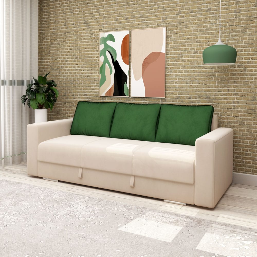 <p><b>Canapea extensibila MAGIS, Catifea Bej, perne Catifea Verde – exclusiv TAMOS! Fabricata in ROMANIA!</b><br></p><p><strong><img src="https://www2.tamos.ro/images/companies/1/Icons%20TAMOS/untitled%20folder/Mobilier%20kit%2050%20opt.png?1662648243606"> Caracteristici si avantaje canapea extensibila 3 locuri Magis</strong></p><div class="descriere"><ul><li>Structura metalica rigida</li><li>Sistem de extensie metalic, balamale cu arc, sistem de sincronizare a ridicarii</li><li>Pentru durabilitate ridicata, sezutul este conceput dintr-un sistem modern de plasa de arcuri si bureti de calitate.</li><li>Lada de depozitare din PAL melaminat</li><li>Perne decorative cu husa detasabila – dim. 55*77*10cm.</li></ul><p><span style="color: #000080;"><strong> </strong></span><span style="color: #000000;"><strong><img src="https://www2.tamos.ro/images/companies/1/Icons%20TAMOS/untitled%20folder/Produs%20configurabil%2050%20opt.png?1662648329703"> Dimensiune canapea compacta</strong></span></p><ul><li>lungime: 230cm</li><li>latime: 95cm</li><li>inaltime sezut: 46cm</li><li>inaltime spatar: 75cm</li><li>inaltime totala(inclusiv perne): 87cm</li></ul><p><span style="color: #000080;"><strong><span class="redactor-invisible-space"></span> </strong></span><span style="color: #000000;"><strong><img src="https://www2.tamos.ro/images/companies/1/Icons%20TAMOS/untitled%20folder/Produs%20configurabil%2050%20opt.png?1662648354186"> Dimensiune canapea extinsa</strong></span></p><ul><li>lungime: 192cm</li><li>latime: 150cm (suprafata de dormit, ideala pentru 2 persoane)</li><li>inaltime sezut: 46cm</li></ul><p><strong> <img src="https://www2.tamos.ro/images/companies/1/Icons%20TAMOS/untitled%20folder/Materiale%2050%20opt.png?1662648372170"> Decoruri</strong></p></div><div class="descriere"><ul><li><strong>Catifea Bej, perne Catifea Verde</strong></li></ul><p><strong><img src="https://www2.tamos.ro/images/companies/1/Icons%20TAMOS/untitled%20folder/Garantie%2050%20opt.png?1662648438506"> Garantie producator 24 luni</strong><br></p><p><span style="line-height: 20.8px;"> <strong><img src="https://www2.tamos.ro/images/companies/1/Icons%20TAMOS/untitled%20folder/Livrare%20gratuita%2050%20opt.png?1662648482731"> Livrare GRATUITA in toata Romania</strong></span></p><p><br></p></div>