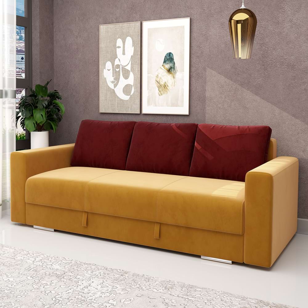 <p><b>Canapea extensibila MAGIS, Catifea Galben Mustar, perne Rosu Grena – exclusiv TAMOS! Fabricata in ROMANIA!</b><br></p><p><strong><img src="https://www2.tamos.ro/images/companies/1/Icons%20TAMOS/untitled%20folder/Mobilier%20kit%2050%20opt.png?1662648243606"> Caracteristici si avantaje canapea extensibila 3 locuri Magis</strong></p><div class="descriere"><ul><li>Structura metalica rigida</li><li>Sistem de extensie metalic, balamale cu arc, sistem de sincronizare a ridicarii</li><li>Pentru durabilitate ridicata, sezutul este conceput dintr-un sistem modern de plasa de arcuri si bureti de calitate.</li><li>Lada de depozitare din PAL melaminat</li><li>Perne decorative cu husa detasabila – dim. 55*77*10cm.</li></ul><p><span style="color: #000080;"><strong> </strong></span><span style="color: #000000;"><strong><img src="https://www2.tamos.ro/images/companies/1/Icons%20TAMOS/untitled%20folder/Produs%20configurabil%2050%20opt.png?1662648329703"> Dimensiune canapea compacta</strong></span></p><ul><li>lungime: 230cm</li><li>latime: 95cm</li><li>inaltime sezut: 46cm</li><li>inaltime spatar: 75cm</li><li>inaltime totala(inclusiv perne): 87cm</li></ul><p><span style="color: #000080;"><strong><span class="redactor-invisible-space"></span> </strong></span><span style="color: #000000;"><strong><img src="https://www2.tamos.ro/images/companies/1/Icons%20TAMOS/untitled%20folder/Produs%20configurabil%2050%20opt.png?1662648354186"> Dimensiune canapea extinsa</strong></span></p><ul><li>lungime: 192cm</li><li>latime: 150cm (suprafata de dormit, ideala pentru 2 persoane)</li><li>inaltime sezut: 46cm</li></ul><p><strong> <img src="https://www2.tamos.ro/images/companies/1/Icons%20TAMOS/untitled%20folder/Materiale%2050%20opt.png?1662648372170"> Decoruri</strong></p></div><div class="descriere"><ul><li><strong>Catifea Galben Mustar, perne Rosu Grena</strong></li></ul><p><strong><img src="https://www2.tamos.ro/images/companies/1/Icons%20TAMOS/untitled%20folder/Garantie%2050%20opt.png?1662648438506"> Garantie producator 24 luni</strong><br></p><p><span style="line-height: 20.8px;"> <strong><img src="https://www2.tamos.ro/images/companies/1/Icons%20TAMOS/untitled%20folder/Livrare%20gratuita%2050%20opt.png?1662648482731"> Livrare GRATUITA in toata Romania</strong></span></p><p><br></p></div>