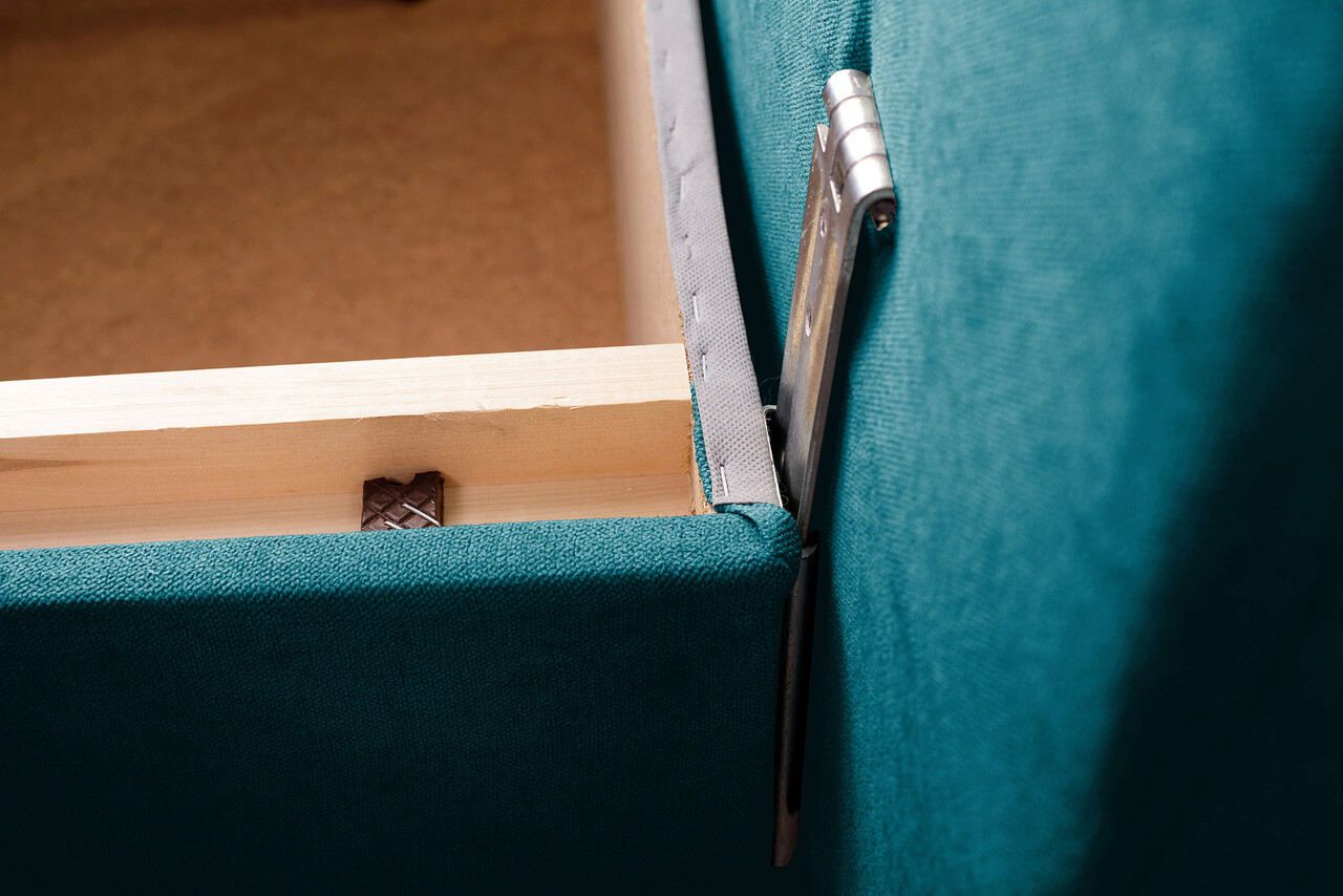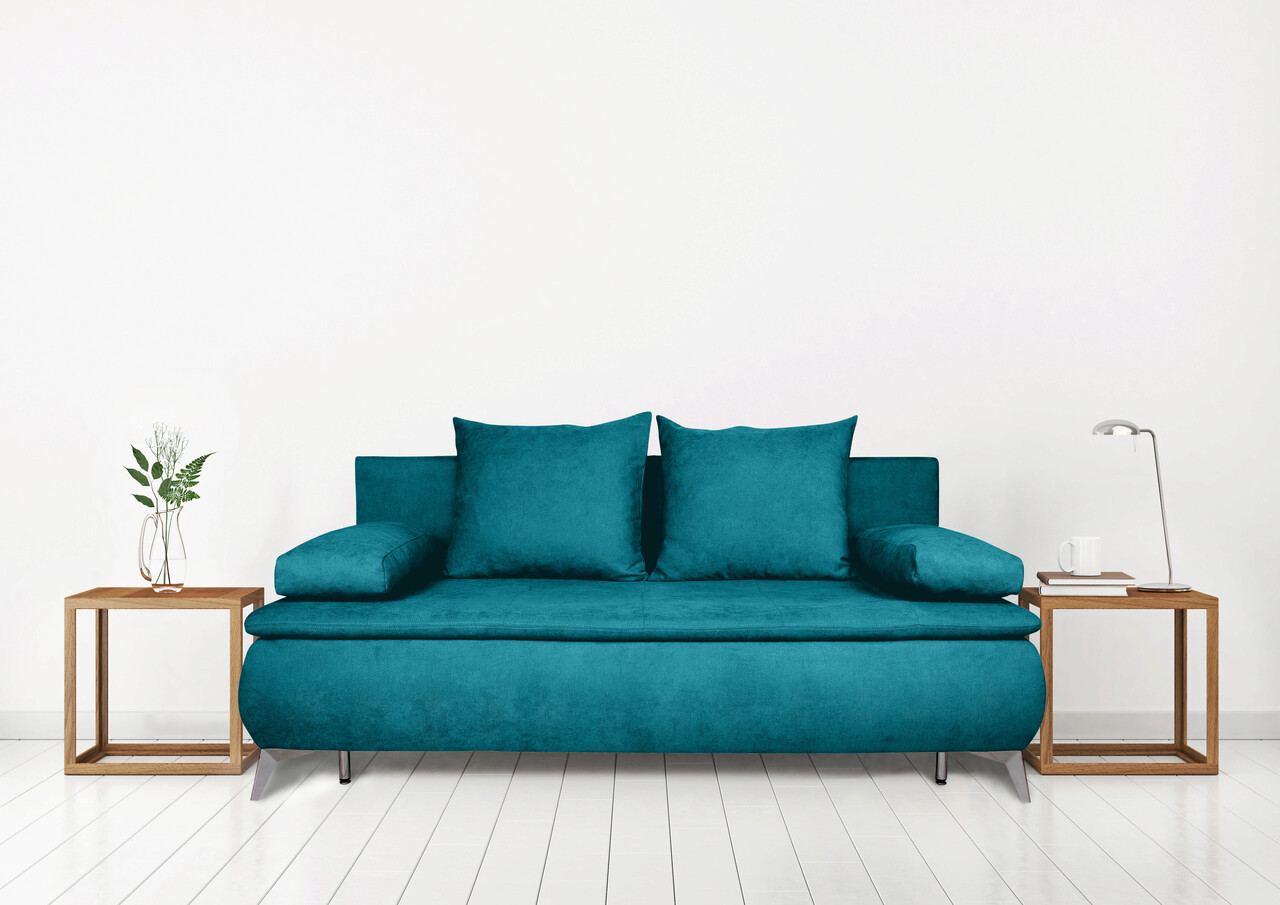 Canapea extensibila Sofie, cu lada pentru depozitare, 3 locuri, 203x92x86 cm, Albastru turcoaz