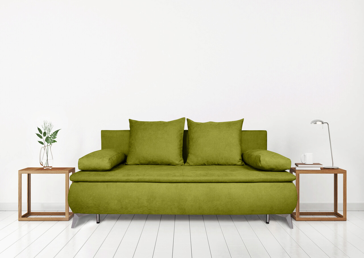 Canapea extensibila Sofie, cu lada pentru depozitare, 3 locuri, 203x92x86 cm, Verde