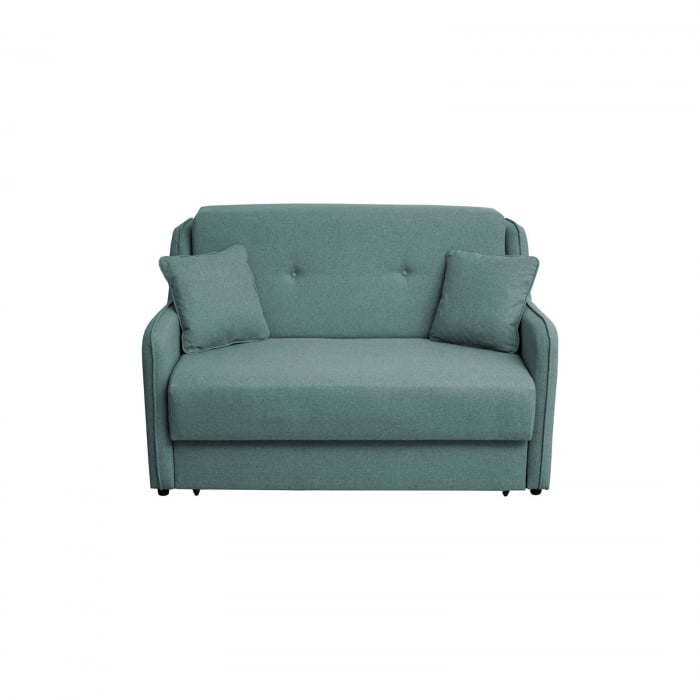 Canapea GALA extensibila, 2 locuri, cu arcuri si lada depozitare, gri albastrui, 140x100x95 cm