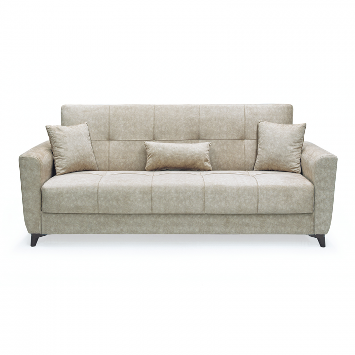 Canapea LEON extensibila, 3 locuri, cu arcuri si lada depozitare, crem, 224x90x95 cm