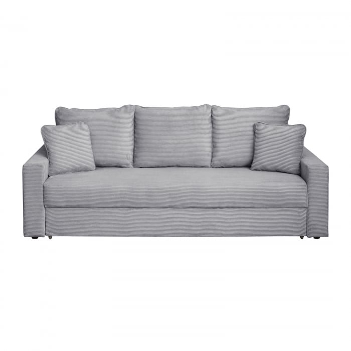Canapea NICO II LUX extensibila, 3 locuri, cu arcuri si lada depozitare, gri, 220x85x75 cm