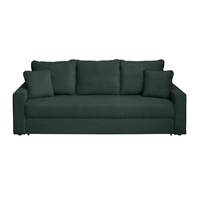 Canapea NICO II LUX extensibila, 3 locuri, cu arcuri si lada depozitare, verde smarald, 220x85x75 cm