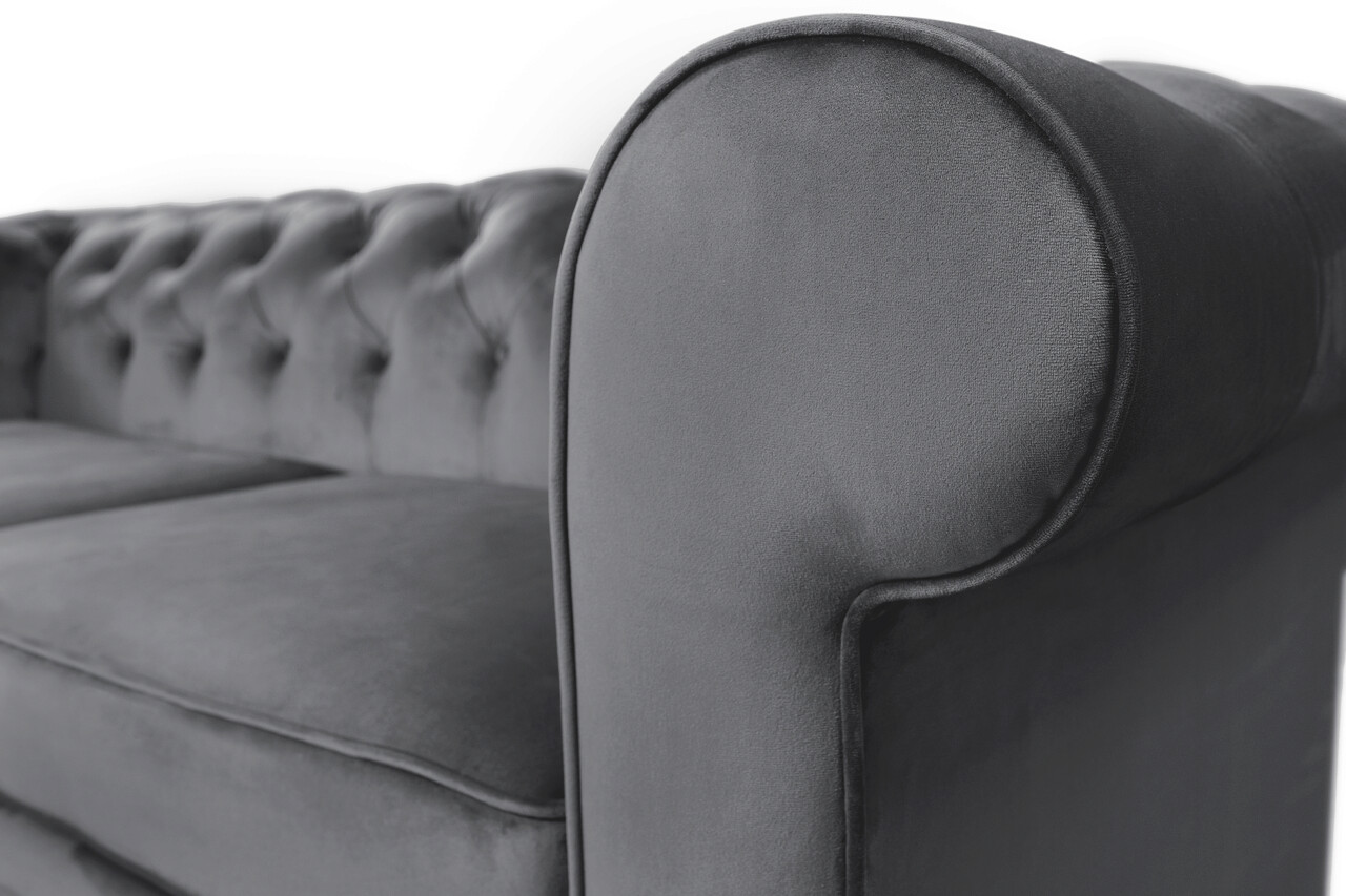 Ofera un aer stilat oricarui spatiu, iar oaspetilor tai un loc de relaxare, confortabil si atragator. Lasa-te rasfatat!Perfecta pentru a va accentua zona de lounge, canapeaua Oxford Chesterfield este un plus excelent pentru orice camera de zi, dormitor sau spatiu de birou. Cu un design modern, canapeaua Oxford Chesterfield vă asigura o experienta relaxanta si un confort de exceptie, gratie stabilitatii ridicate si durabilitatii sporite.Tapitata cu material de catifea din poliester, neted si moale la atingere, dar rezistent la uzura, se potriveste perfect cu orice tema decorativa, office sau family, fiind astfel elementul ideal ce completeaza un decor elegant. Lungime: 183 cmInaltime: 75 cmInaltime sezut: 43 cmAdancime: 60 cmLatime: 93 cm Material:exterior: material textil;structura interioara: lemn, PAL, spuma poliuretanica, arcuri sinusoidale. Canapeaua NU este extensibila. Fabricat cu mandrie in Romania!