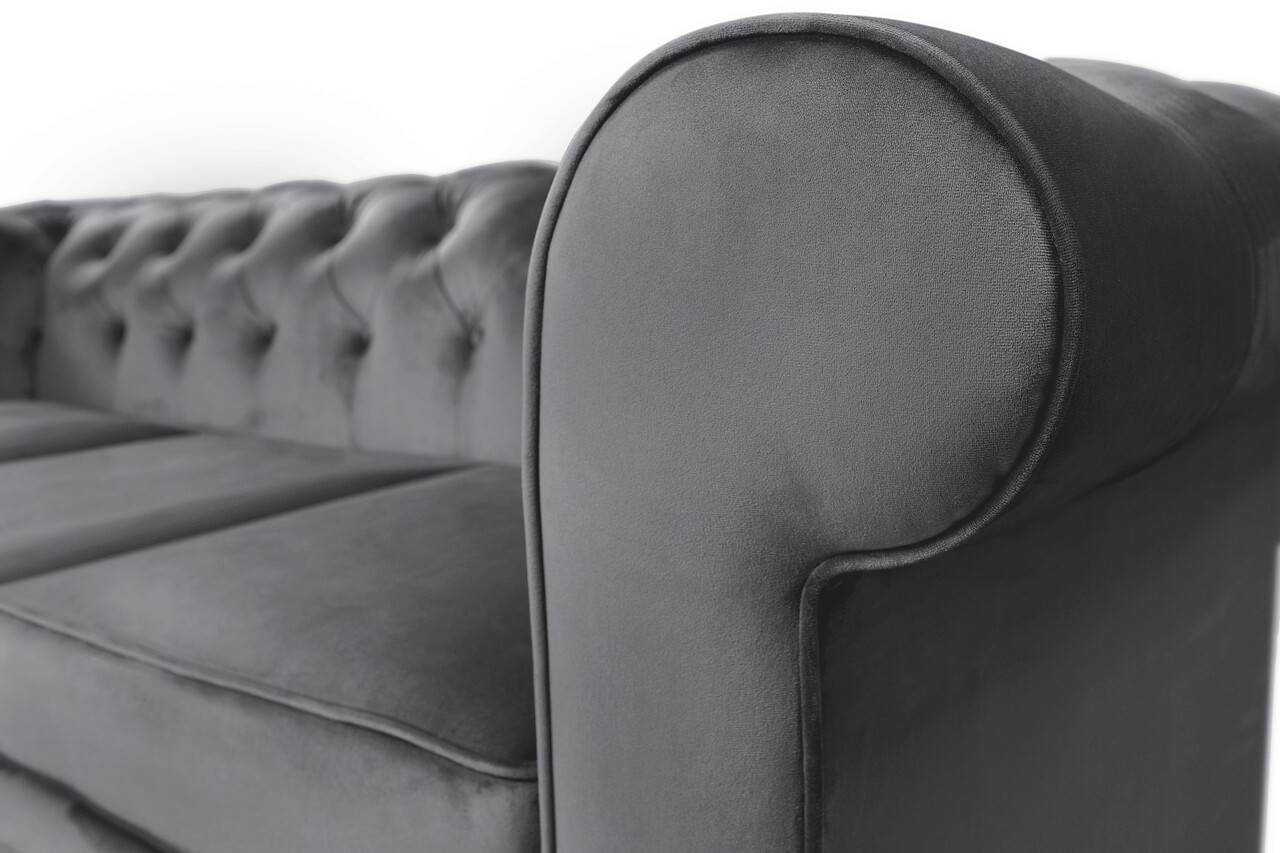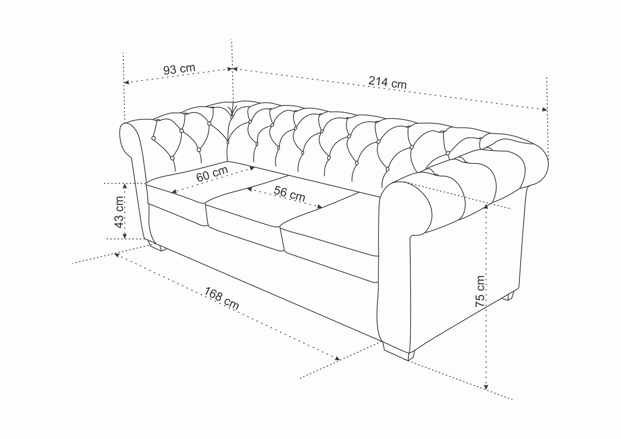 Stilul clasic si sofisticat face din aceasta gama o alegere versatila care nu face compromisuri in ceea ce priveste confortul. Lasa-te inspirat!Cu un aspect modern, canapeaua Oxford Chesterfield vă asigura o experienta relaxanta, gratie stabilitatii ridicate si durabilitatii sporite.Tapitata cu material de catifea din poliester, neted si moale la atingere, dar rezistent la uzura, se potriveste perfect cu orice tema decorativa, office sau family, creand astfel un aspect vizual elegant si stilat. Lungime: 214 cmInaltime: 75 cmInaltime sezut: 43 cmAdancime: 60 cmLatime: 93 cm Material:exterior: material textil;structura interioara: lemn, PAL, spuma poliuretanica, arcuri sinusoidale. Canapeaua NU este extensibila. Fabricat cu mandrie in Romania!