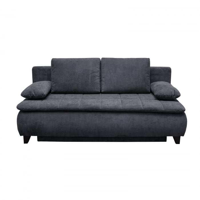 Canapea PALERMO extensibila, 3 locuri, cu arcuri si lada depozitare, gri inchis, 209x96x83 cm