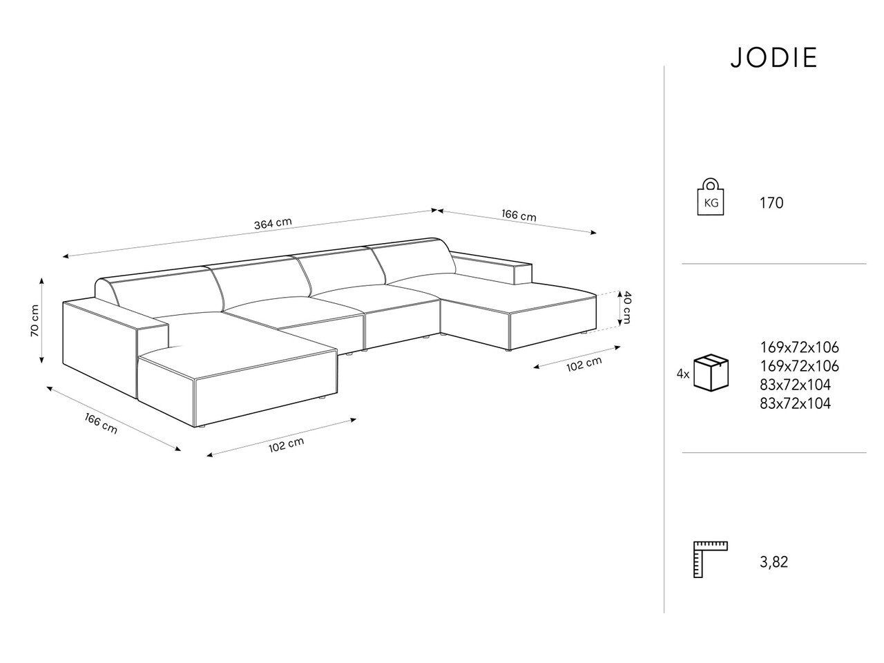 Canapea panoramica 6 locuri, Jodie, Micadoni Home, BL, 364x166x70 cm, poliester, bej deschis