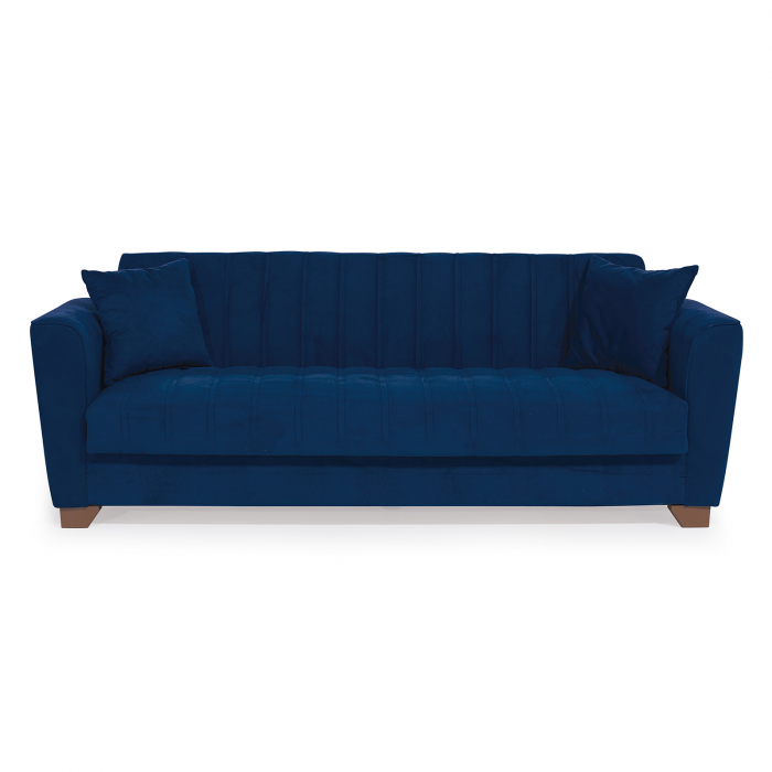 Canapea QUEEN extensibila, 3 locuri, cu arcuri si lada depozitare, albastru, 218x70x80 cm