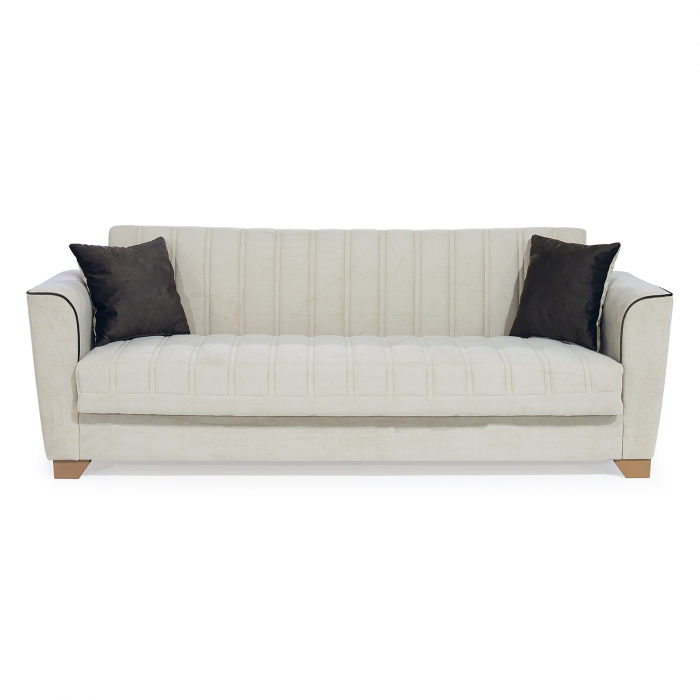 Canapea QUEEN extensibila, 3 locuri, cu arcuri si lada depozitare, crem, 218x70x80 cm