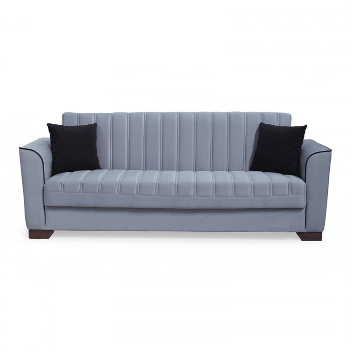 Canapea QUEEN extensibila, 3 locuri, cu arcuri si lada depozitare, gri, 218x70x80 cm